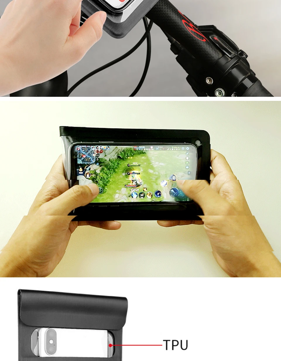 Характеристика: 1. Установите его на любой велосипед/мотоцикл, диаметр руля которого составляет 17 мм-60 мм. 2. Вы можете проверить время/карту/звонки/сообщения независимо от того, в хорошие дни или в дождливые дни. 3. Прозрачная мембрана обеспечивает легкий доступ к сенсорному экрану вашего устройства, удобно проверять время, карты, принимать экстренные вызовы, читать сообщения и т. Д. 4. Водонепроницаемый чехол защищает ваш мобильный телефон и другие электронные устройства от воды, песка, грязи. (Примечание: Пожалуйста, не закрывайте воду или не кладите ее под воду, когда вы ныряете или плаваете.) 5. Съемное и регулируемое крепление на руль позволяет вращать на 360 градусов под разными углами и легко регулировать оптимальные углы обзора. 6. Сверхмощная присоска и фиксатор убедитесь, что ваше устройство остается на месте, не беспокоясь о его падении или повреждении. Характеристики: 1. Материал: ТПУ сенсорный экран + 840D ПВХ материал 2. Диаметр наконечника мотоцикла/велосипеда: 17 мм-60 мм 3. Вращение на 360 ° и быстрое высвобождение Размер: Сумка наружный размер 21 см x 10,5 см Прозрачный ТПУ Размер 16,8 см x 8,5 см Посылка включает в себя 1 водонепроницаемая сумка 1x Подставка-Держатель