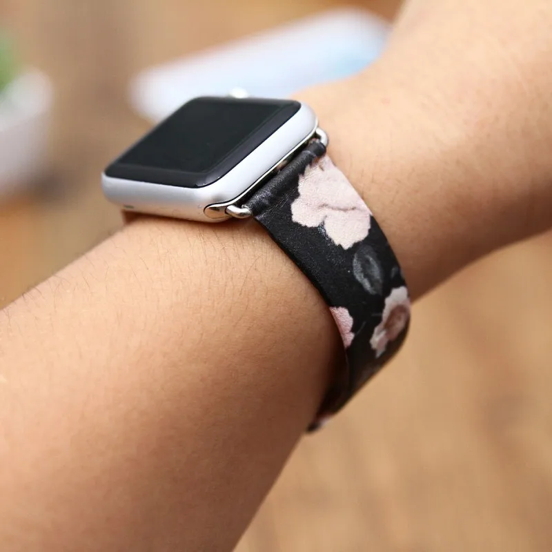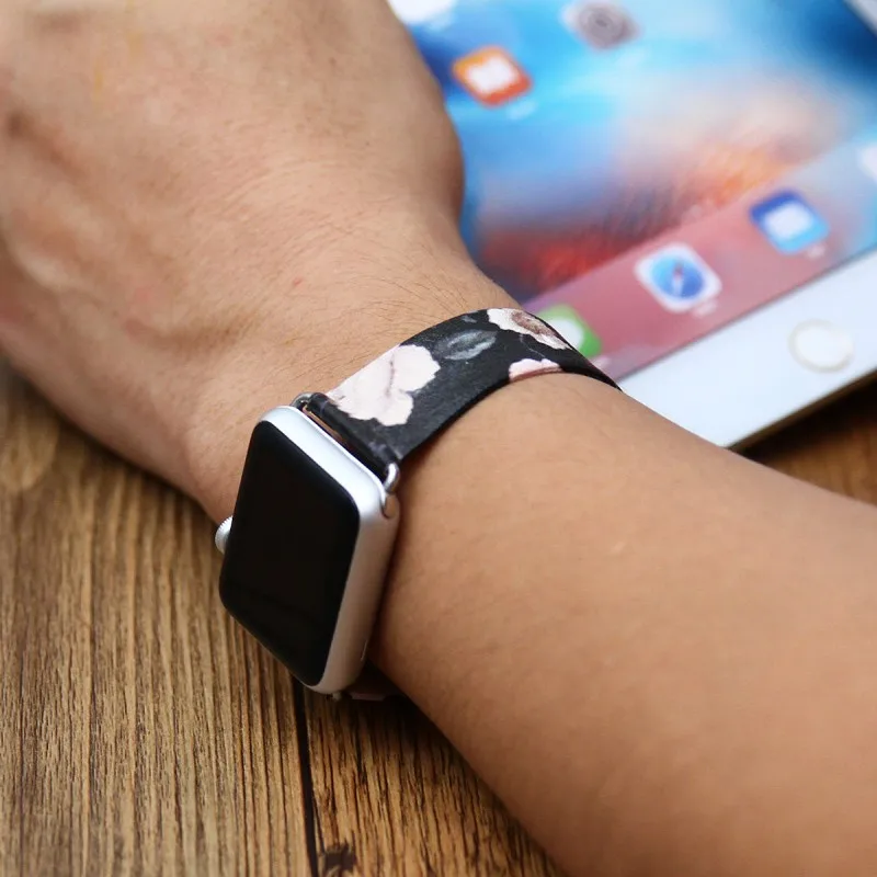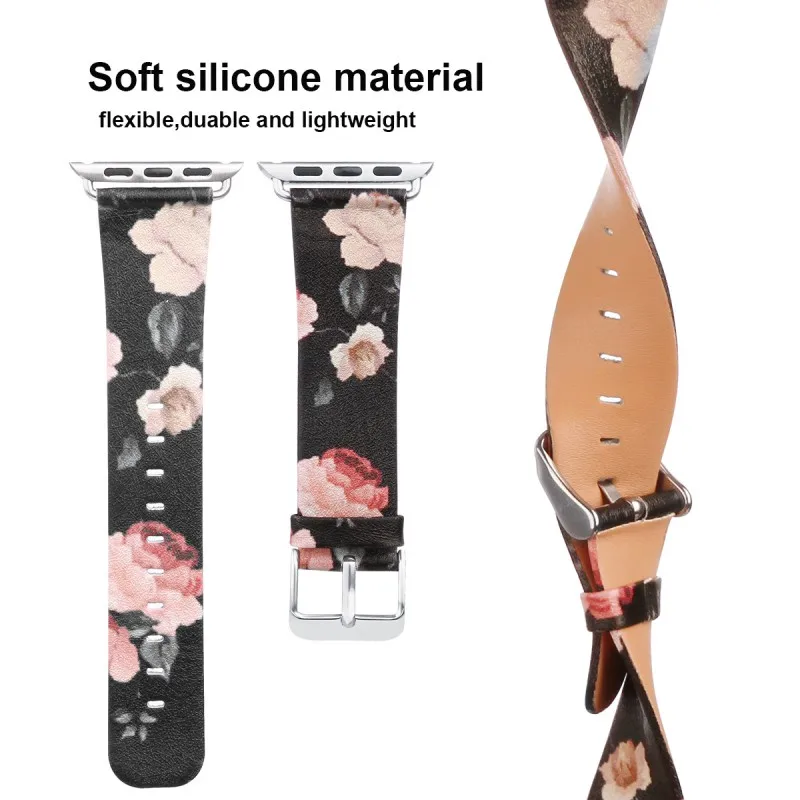 Кожаный ремешок для часов DAHASE с розами и волнами для Apple Watch, 42 мм, 38 мм, сменный Браслет, серия 1, 2, 3, браслет