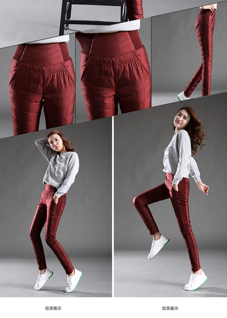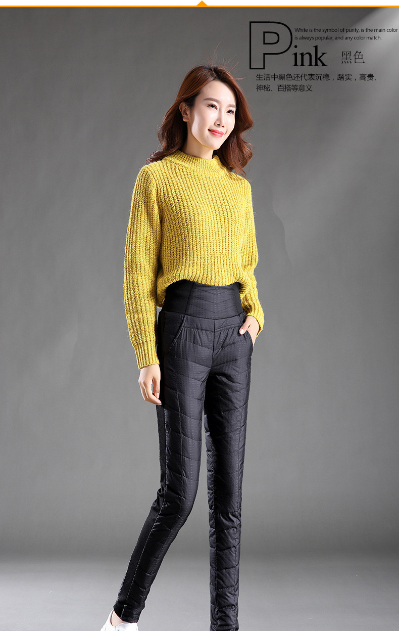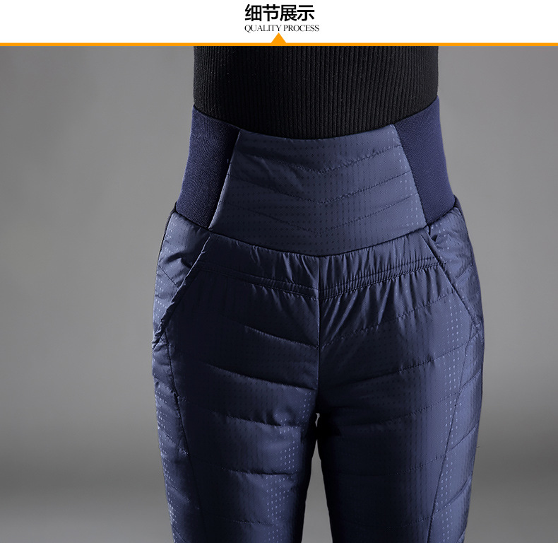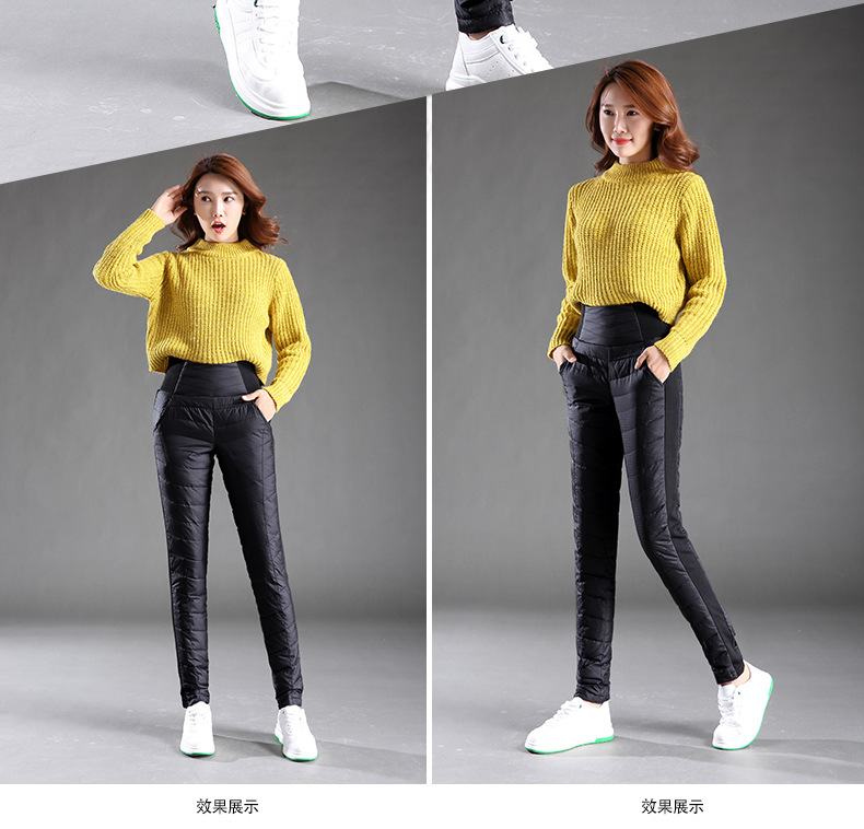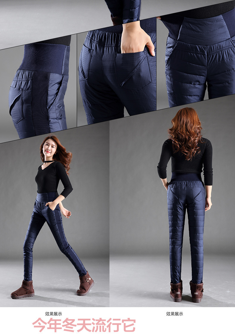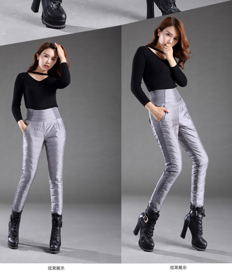 Зимние женские брюки на пуху, уличные женские белые брюки на утином пуху с высокой талией, тонкие плотные однотонные водонепроницаемые теплые штаны 4XL
