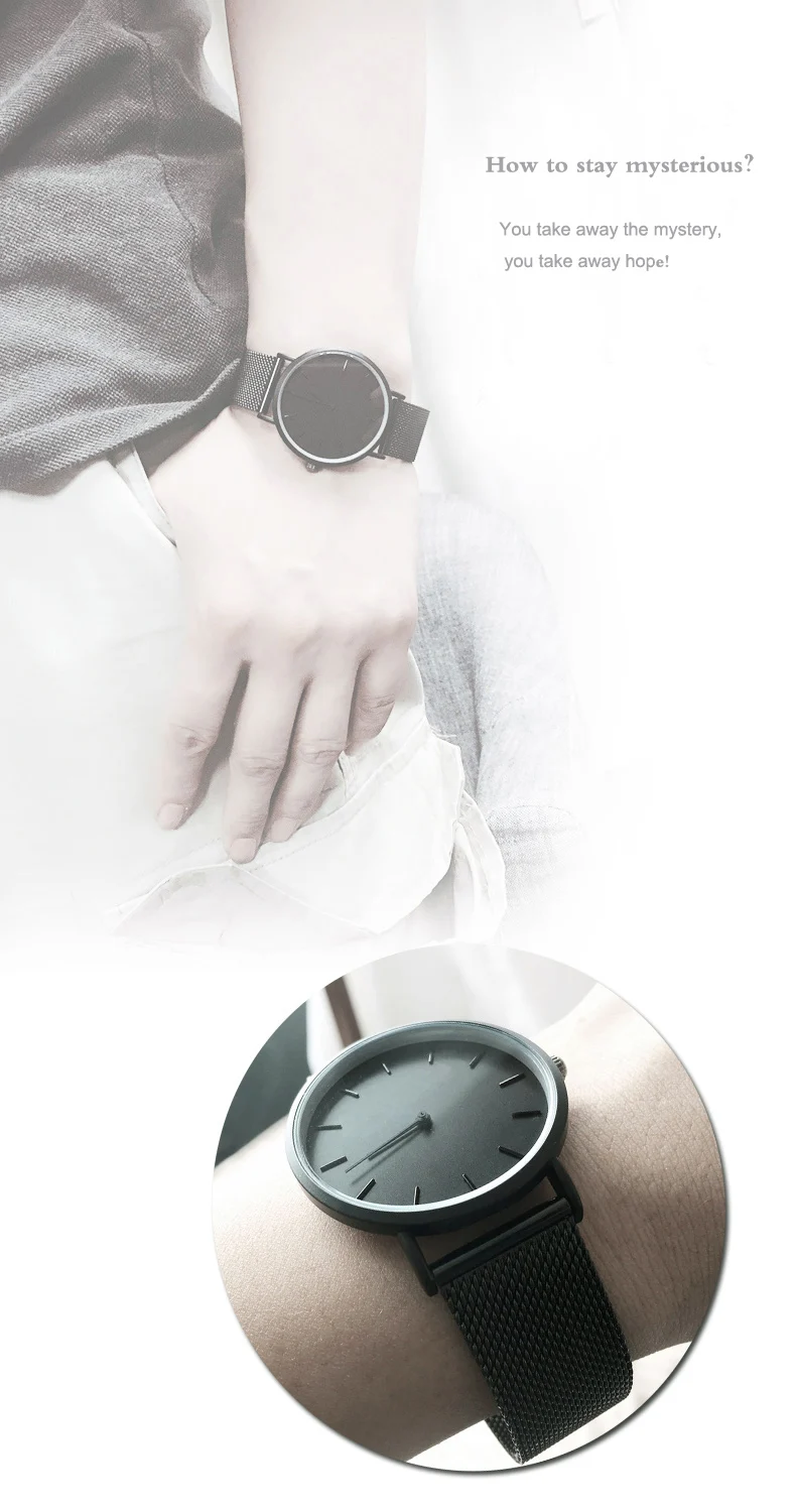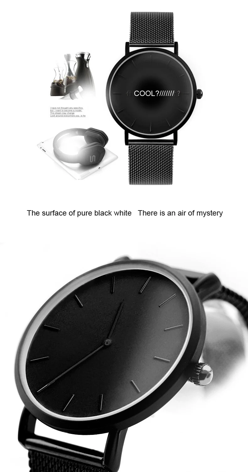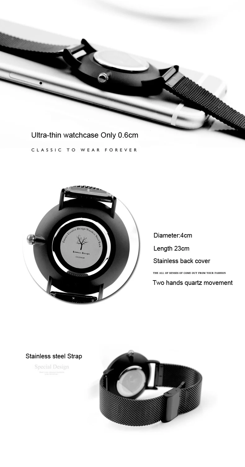 * Пожалуйста, ознакомьтесь с подробной информацией ниже * Чехол для часов: сплав с тонким покрытием (черное покрытие) * Ремешок для часов: кожаный материал или нержавеющая сталь * Водонепроницаемость 30 метров соответствует потребностям повседневной жизни * Мужской размер: длина 24 см, диаметр 4 см, толщина 0,5 см /// женский размер: длина 24 см, диаметр 3,8 см, толщина 0,5 см * Для предпочтений молодежи Креативный дизайн /// Ультратонкий чехол Передовые мировые теории дизайна в уникальном стиле дизайна. Простые и модные две руки.