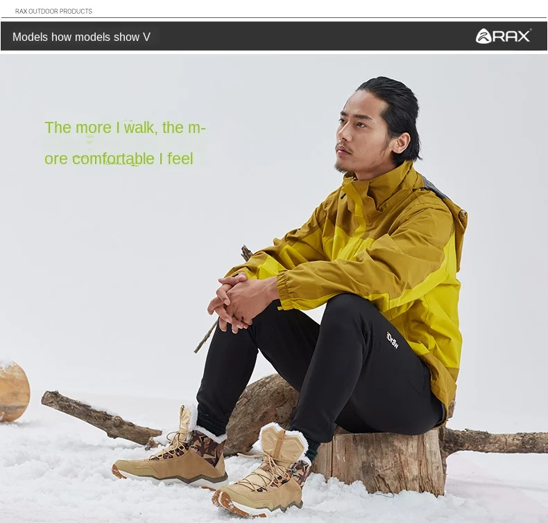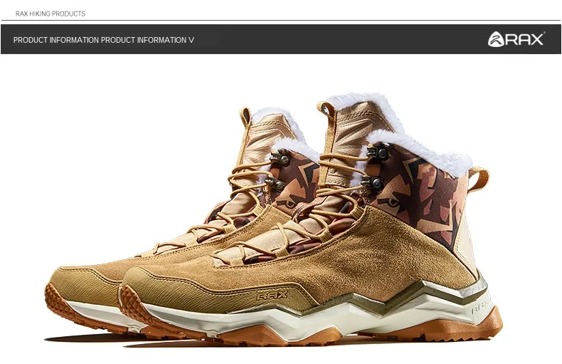 Мужские зимние походные ботинки RAX, горные дышащие походные ботинки, флисовые прогулочные ботинки, снегозащитные походные ботинки, уличная трекинговая обувь