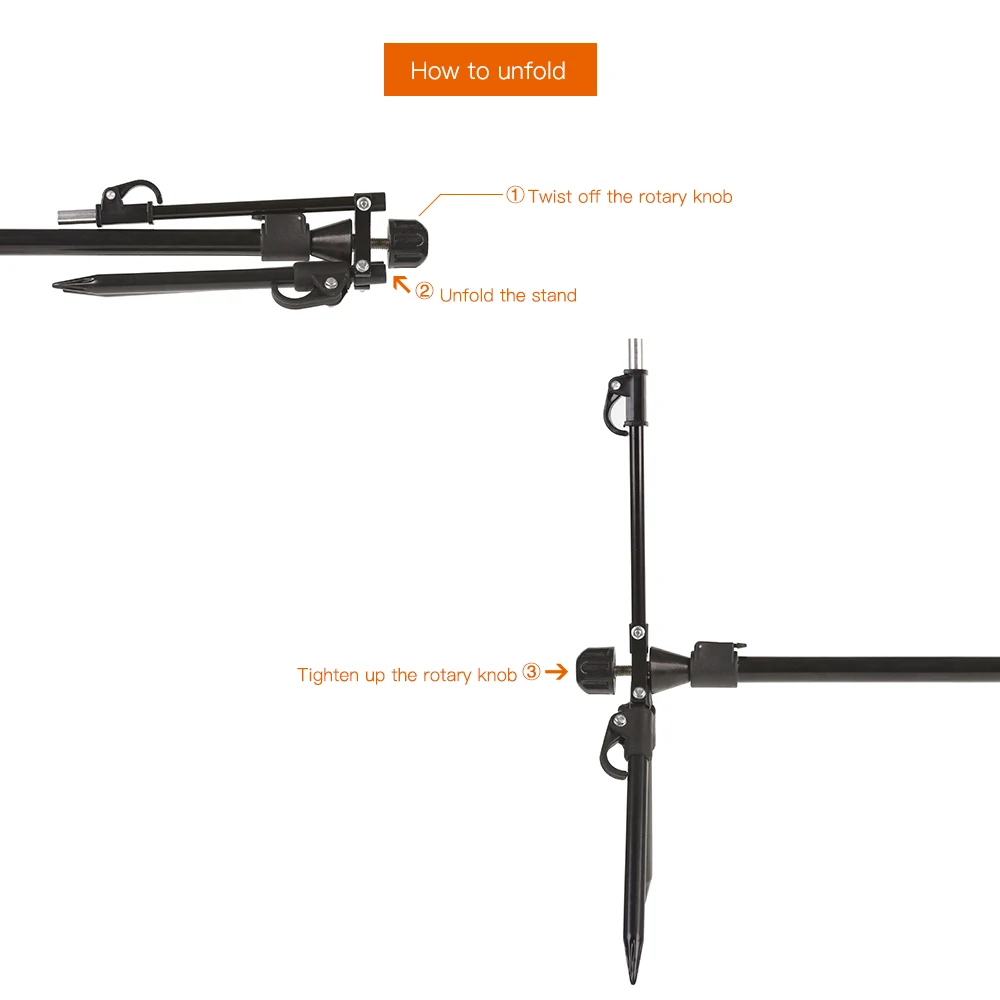 Полностью регулируемая Удочка, 60-82 см (23,6-32,3 дюйма) высота и 75-125 см (29,5-49,2 дюйма) длина в использовании.