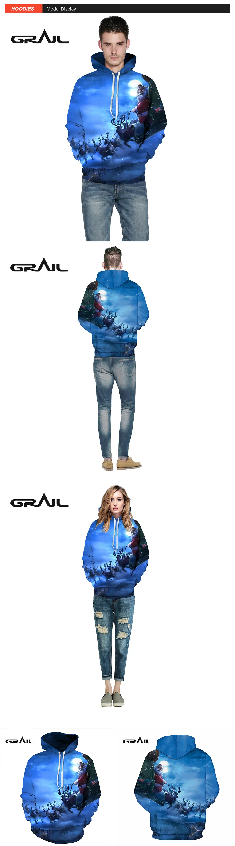 2017 повседневные свободные стильные модные толстовки с 3D цифровой печатью Санта Клаус Хэллоуин Толстовка Пуловер Пара Толстовка QYDM152