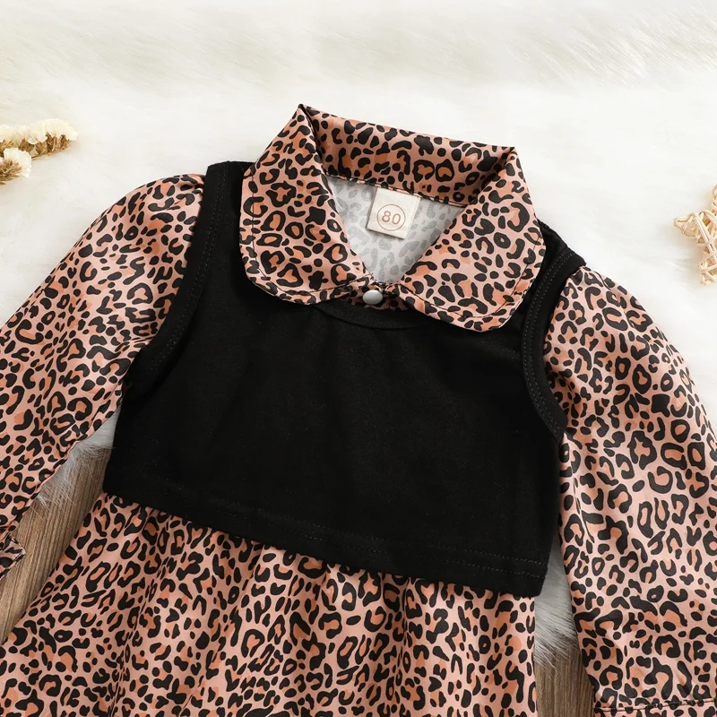 Модное леопардовое платье с длинными рукавами и жилет для маленьких девочек --- наше платье имеет свежий стиль, который понравится вашим маленьким! Подол юбки свободный трапециевидный стиль, демонстрирующий живой, милый и приятный, мягкий и дышащий, делает ваших маленьких девочек такими милыми и очаровательными, как настоящую принцессу.