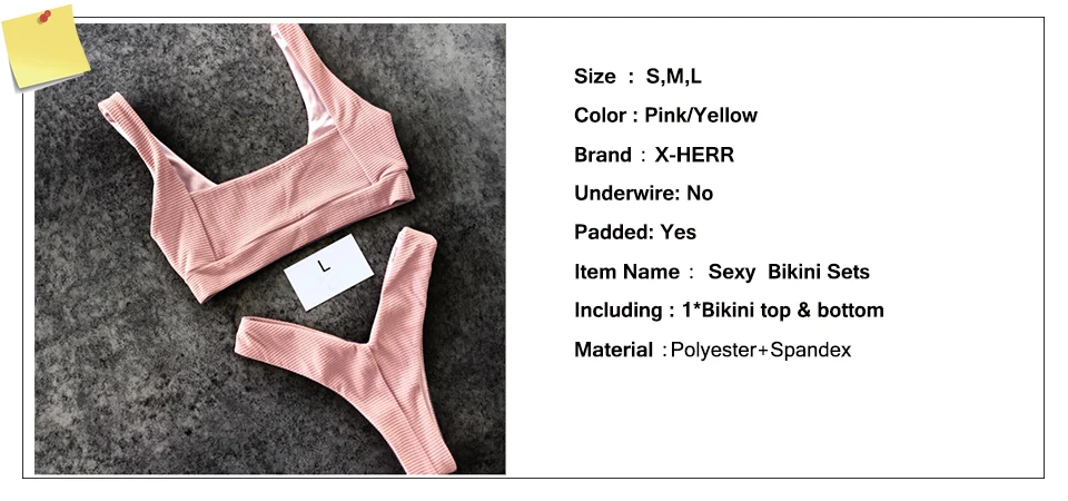 X-HERR, купальник с высоким вырезом, женский купальный костюм, без косточек, с накладками, микро бикини, розовый, желтый, купальный костюм для женщин