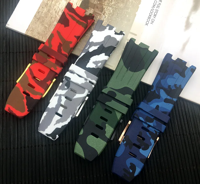 Камуфляжный силиконовый резиновый браслет, ремешок для часов camoflag 28 мм, ремешок для AP, мужской браслет для Audemars и Piguet с логотипом