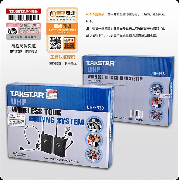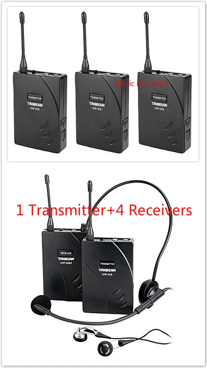 Беспроводная система гида Takstar UHF-938/ UHF 938 UHF частота 1 передатчик + 4 приемника для экскурсий и т. д.
