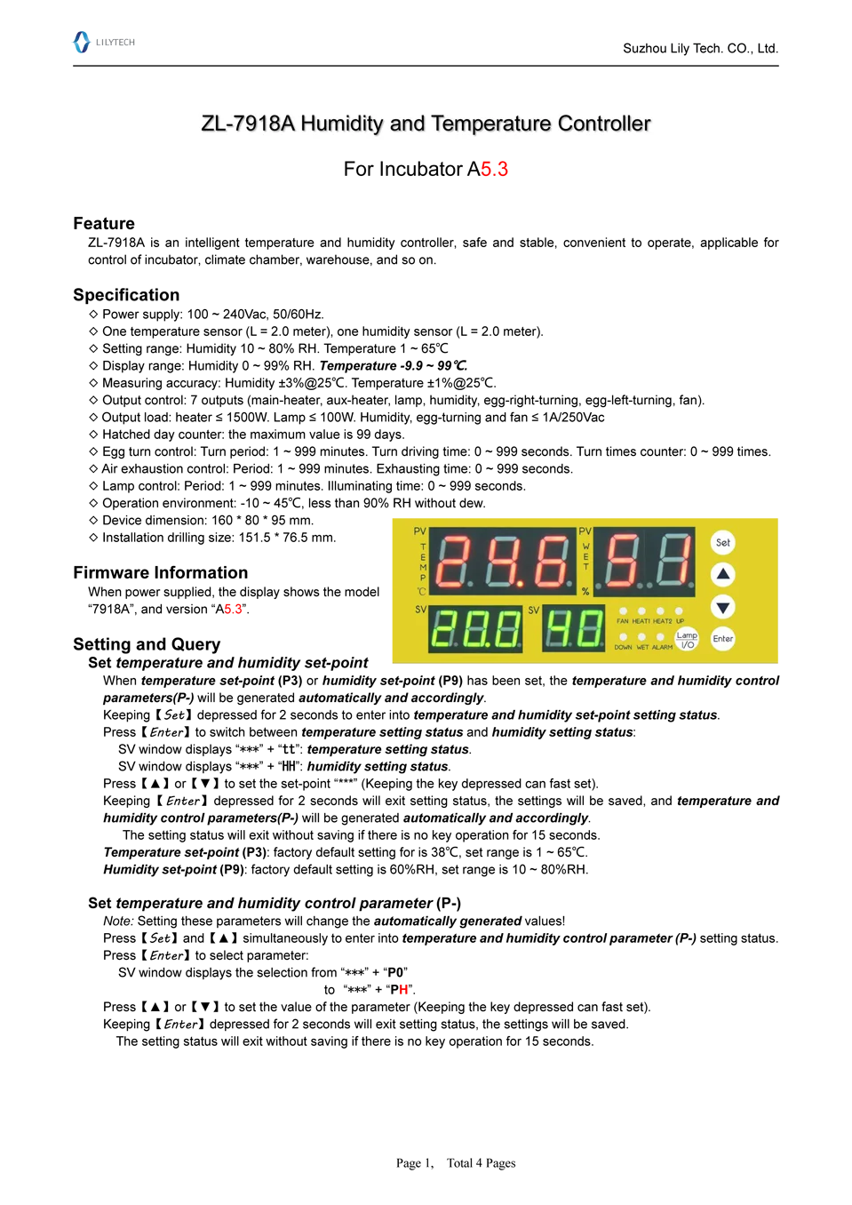 ZL-7918A-это интеллектуальный контроллер температуры и влажности для инкубатора и сходства.