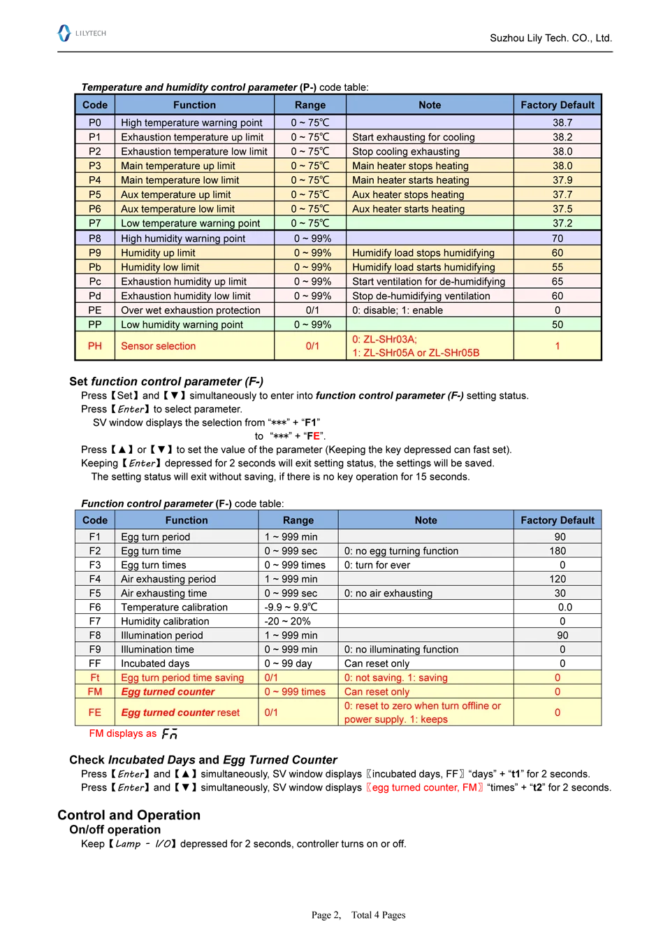 Управление поворотом яйца: период поворота: 1 ~ 999 минут время вождения: 0 ~ 999 секунд