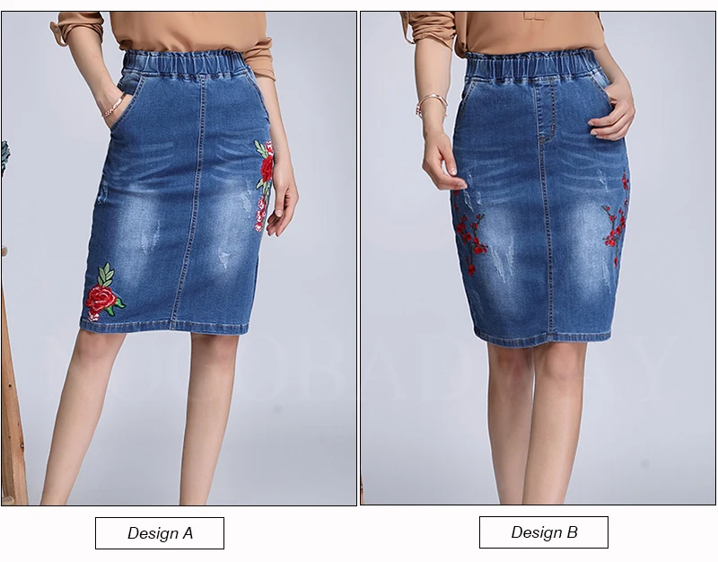 Растягивающаяся талия. Эластичная джинсовая ткань. Функциональные карманы. S-4XL мульти-выбор. Цветочная вышивка. О split: Дизайн с одним Боковым Разрезом, дизайн B с задним разрезом.Ткань: