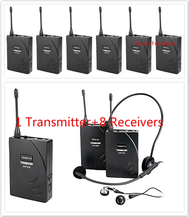 Беспроводная система гида Takstar UHF-938/ UHF 938 UHF частота 1 передатчик + 8 приемников для экскурсий и т. Д.