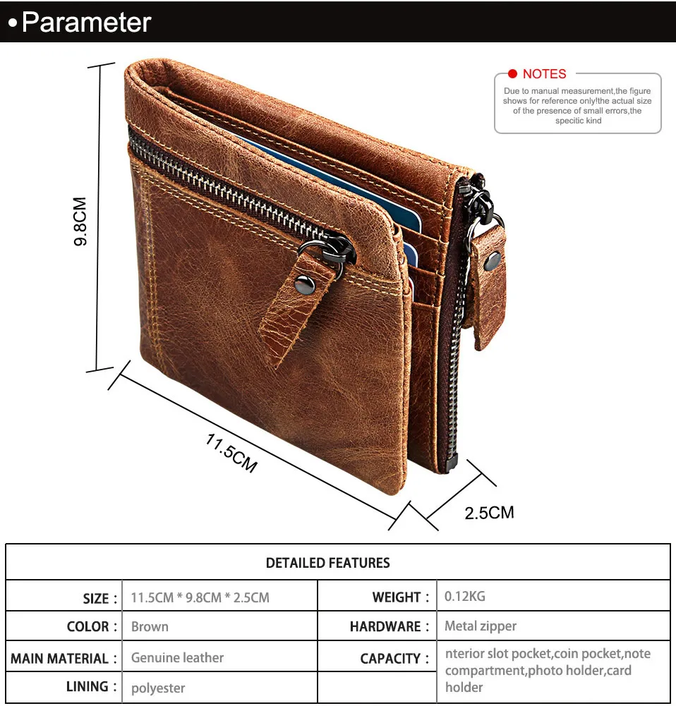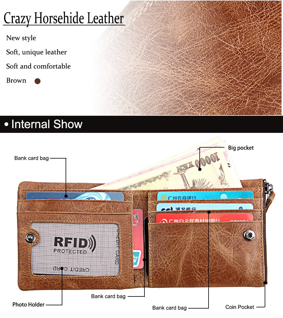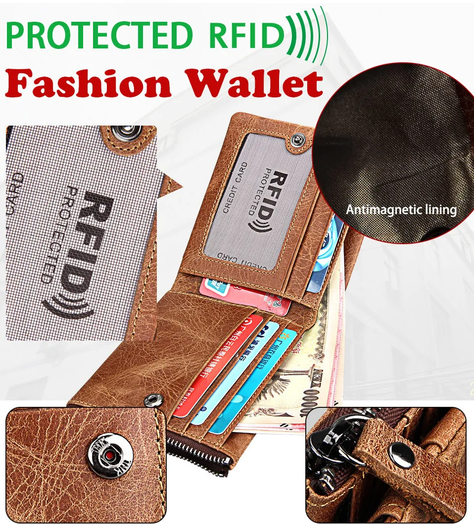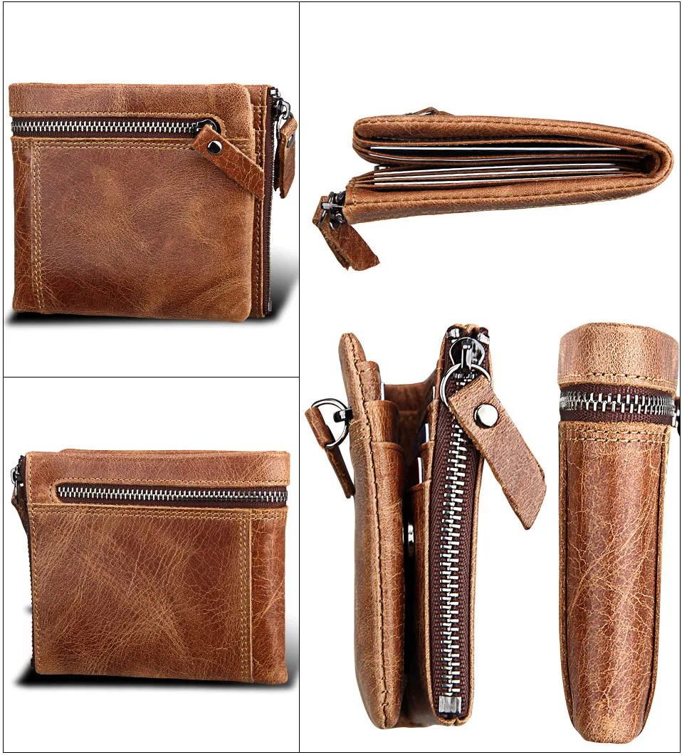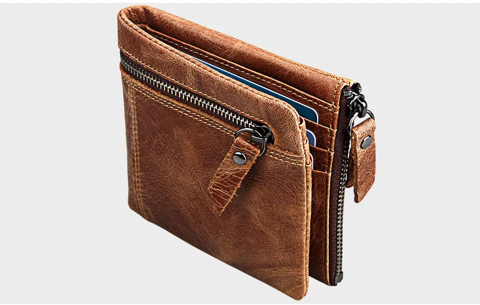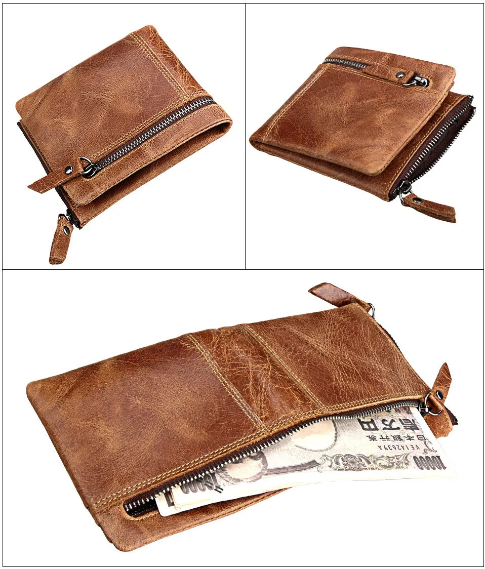Мужской короткий кошелек из натуральной кожи с защитой от кражи Crazy Horse, маленький кошелек на молнии с карманом для монет, известный бренд