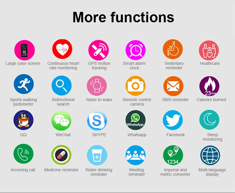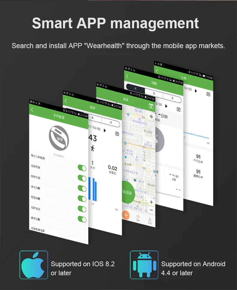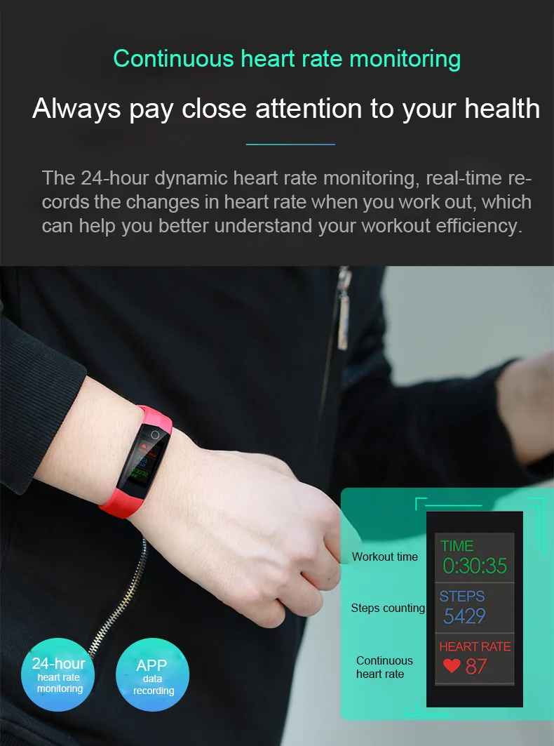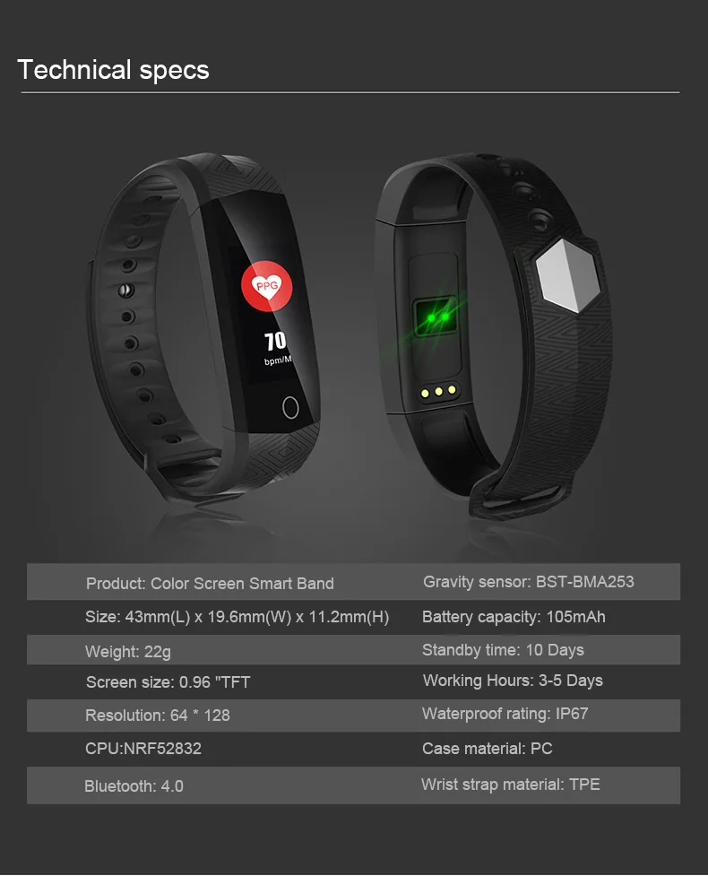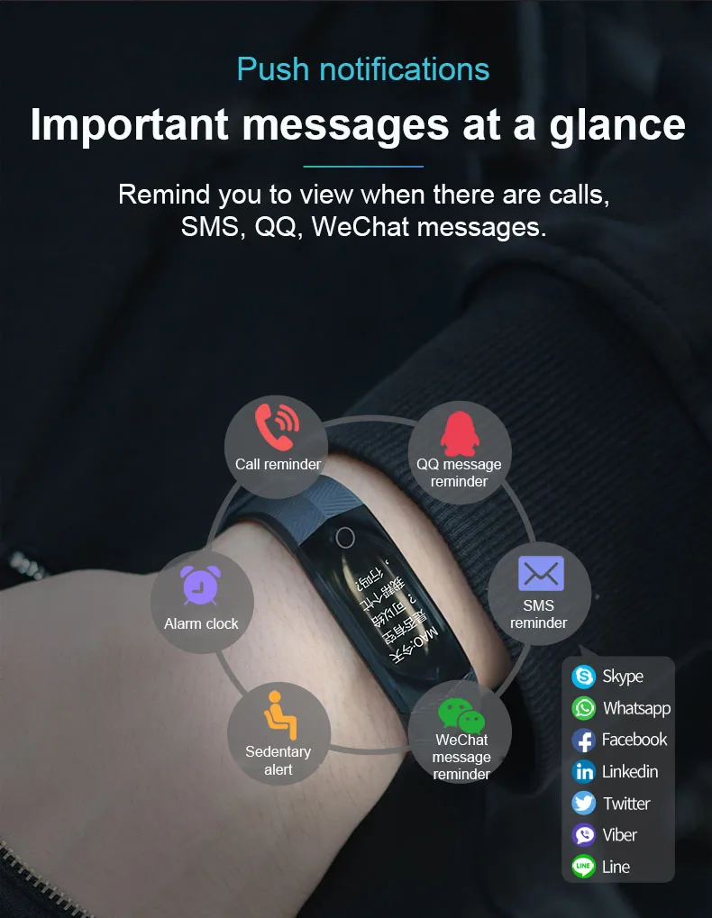 Функция: Push-сообщение, шагомер, напоминание о сообщениях, трекер сердечного ритма, напоминание о звонках, фитнес-трекер