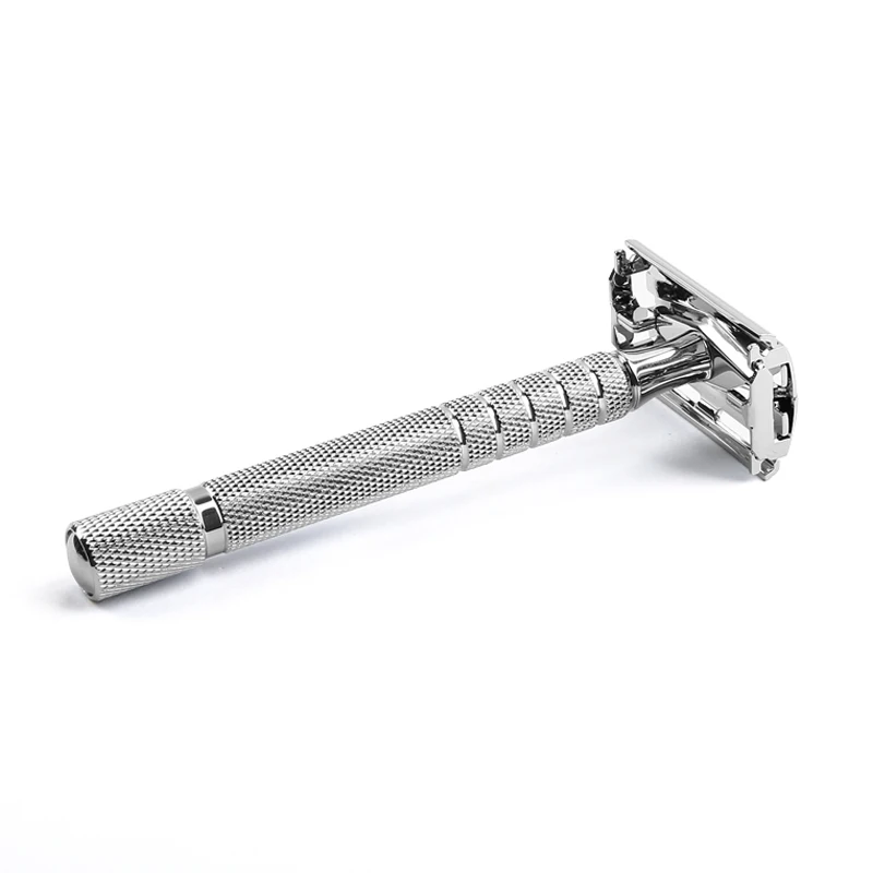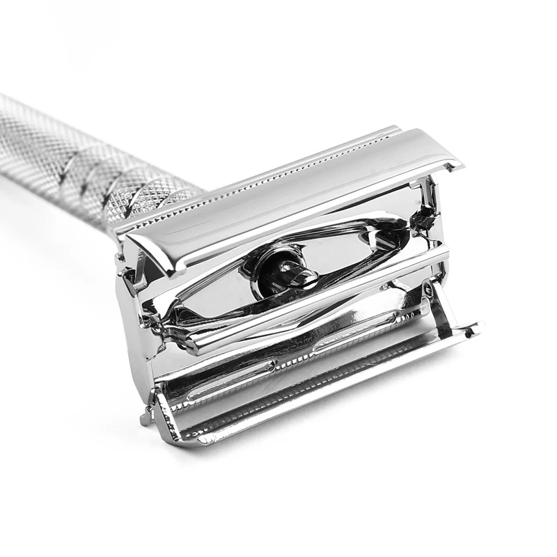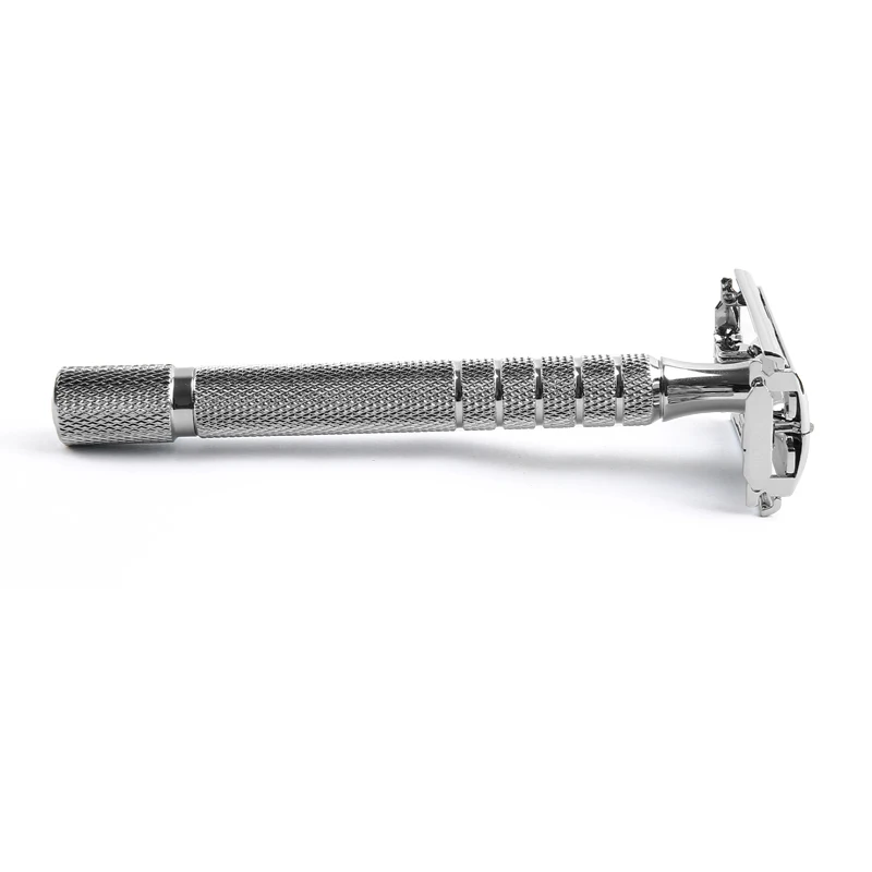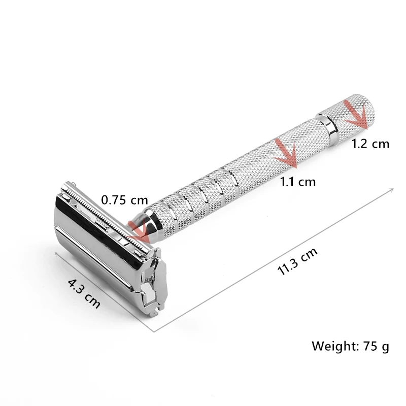 Хромированная бритва YINTAL с длинной ручкой, открытая Безопасная бритва butterfly. Прочное покрытие поверх тяжелого сплава. Вес нетто бритвы: 75 г, примерный Цвет: серебристый, замер: 11,3 см в общей длине. Простая быстрая и безопасный нож замена. Комплектация: 1 x YINTAL Chrome версия RazorThis-красивая Безопасная бритва для вашего собственного использования или в подарок!