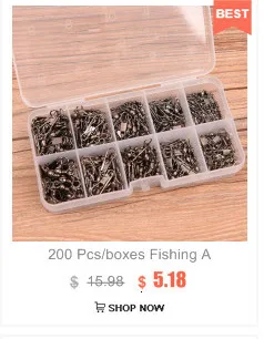ILure 200 шт./коробки рыболовные принадлежности вращающиеся твердые кольца Разъемный соединитель для рыбалки вертлюги защелкивающиеся соединители коробка для рыболовных снастейОсобенности:Простой дизайн для удобства эксплуатации.Пять размеров крошечных завитков (5 # / 7 # / 9 # / 11 # / 13 #) для различных ситуаций рыбалки.Многоразовая пластиковая коробка сохраняет шарнирные защелки организованными и легко хранится.Характеристики:Материал: медный сплавДлина изделия:5 #: 2,6 см7 #: 3,1 см/1,22 дюйма9 #: 3,3 см11 #: 3,8 см13 #: 4,2 смКомплектация:40 шт. * 5 #Поворотный цилиндр40 шт. * 7 #Поворотный цилиндр40 шт. * 9 #Поворотный цилиндр40 шт. * 11 #Поворотный цилиндр40 шт. * 13 #Поворотный цилиндр1 шт. * коробка