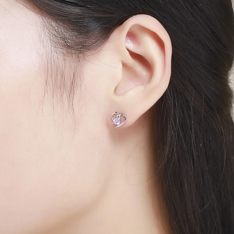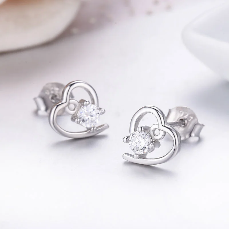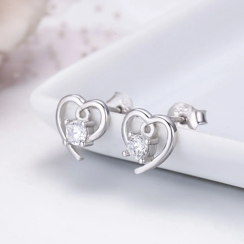 Cute Small 925 Sterling Silver Heart Set CZ Stud Earrings For Women Girls Children Kids Jewelry Orecchini Aros Aretes de mujer