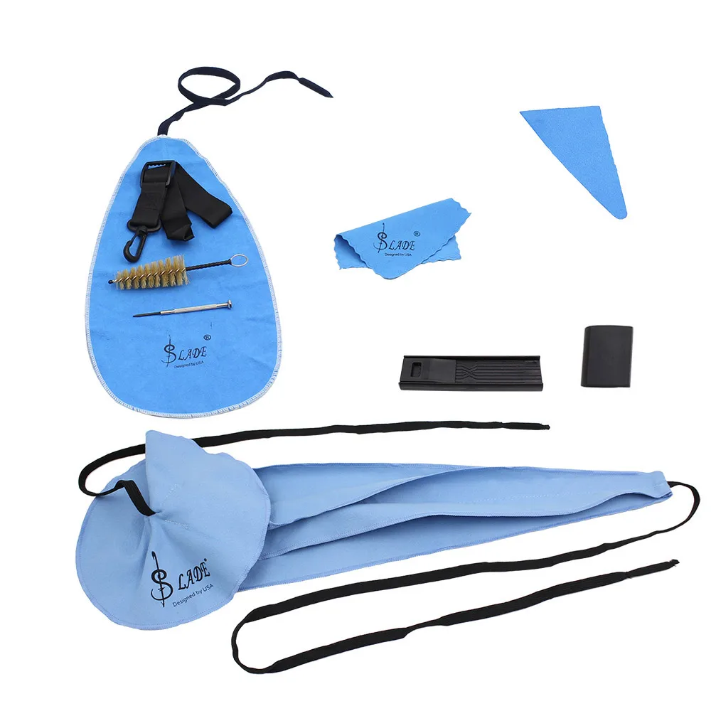 В комплект входит ремень, тростник, подставка для большого пальца, щетка для мундштука, 4 чистящих салфетки и мини-отвертка.