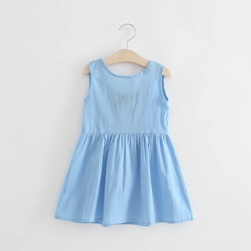 Платье для девочек; Летняя цветная одежда для детей; Повседневные платья принцессы до колена без рукавов