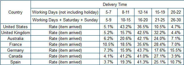 -Товары отправляются авиапочтой, 15-25 рабочих дней в большинство стран и районов-пожалуйста, обратитесь к таблице ниже для времени доставки.