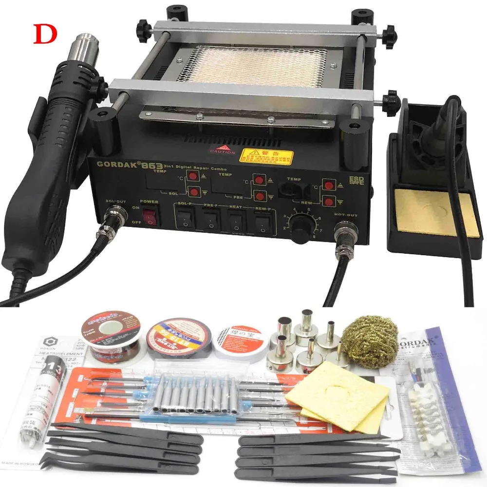 Gordak 863 3 в 1 цифровой тепловой пистолет горячего воздуха паяльная станция BGA + электрический утюг + Инфракрасная станция предварительного нагрева
