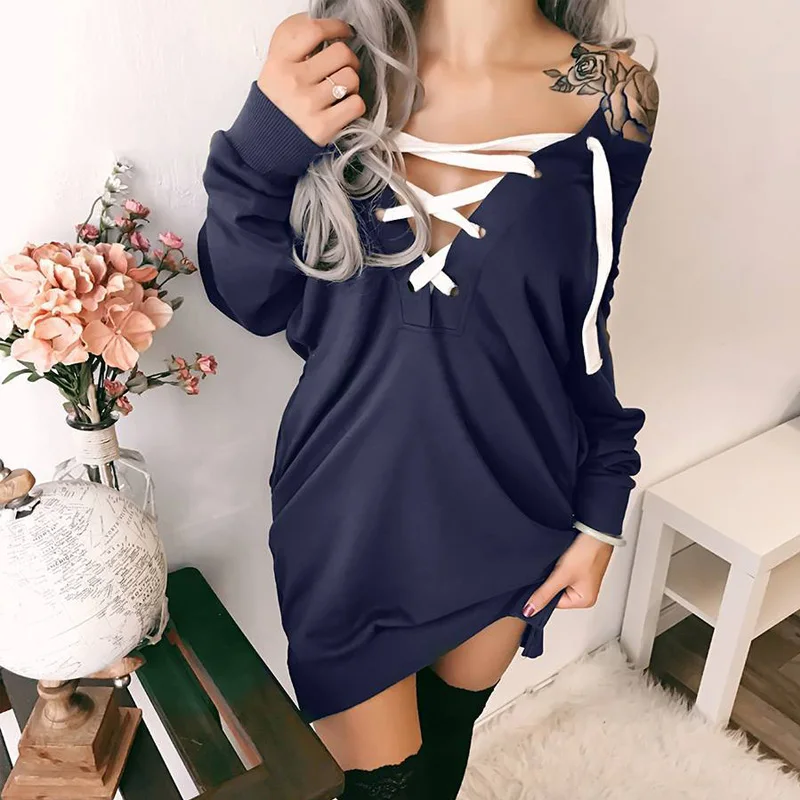 Модный женский теплый Топ с длинным рукавом и v-образным вырезом, пуловер, свитер, платье, джемпер, толстовкаЭто элегантное классическое цветное платье-блузка с дизайном. Прекрасные свободные топы со специальными ремешками. Очень подходит для повседневной носки и любых других повседневных случаев.Стиль: Повседневный свитер; топы; платье Материал: смешанный хлопок