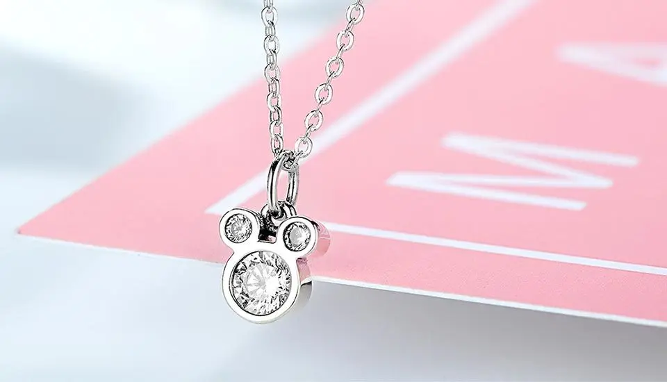 KALETINE 925 Стерлинговое Серебро Miky подвеска мышь ожерелья прозрачный CZ милое ожерелье из мультфильма для женщин ювелирные изделия KLTN047
