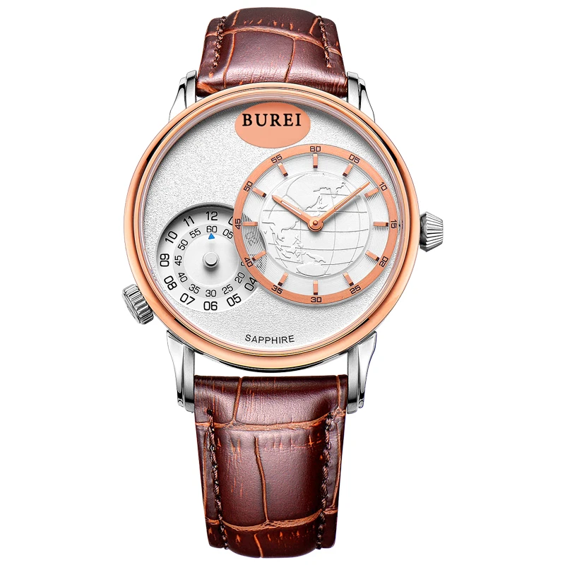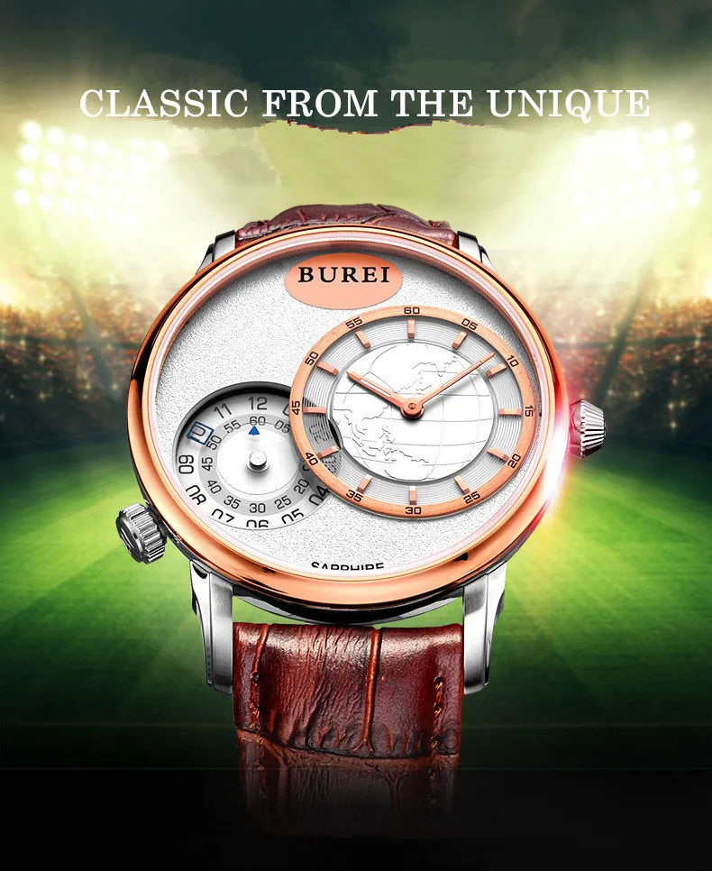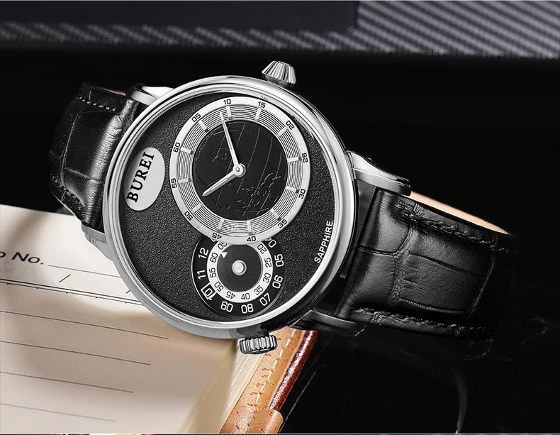 Модные брендовые мужские часы BUREI, Роскошные водонепроницаемые деловые повседневные сапфировые кварцевые наручные часы с двумя часовыми поясами, Relogio Masculino 2021