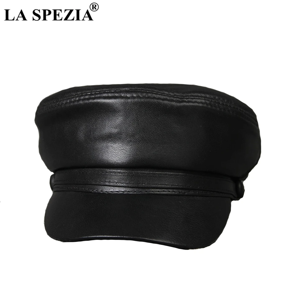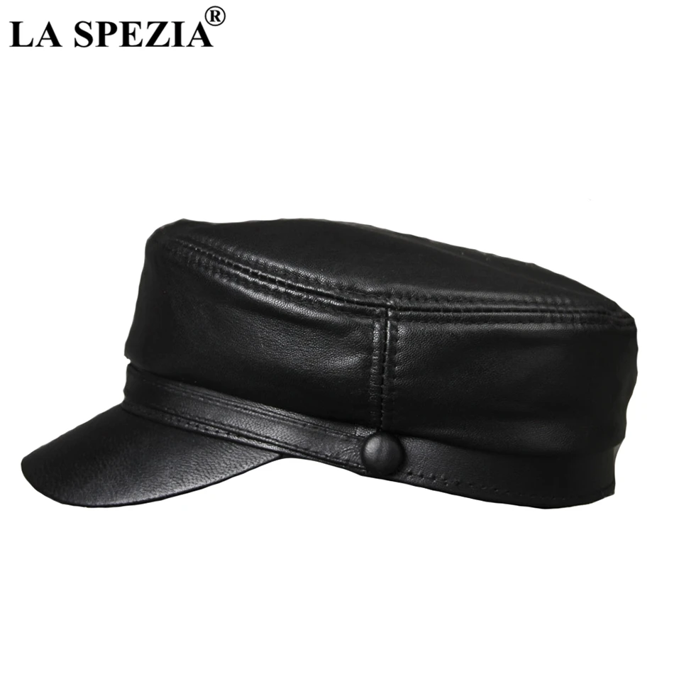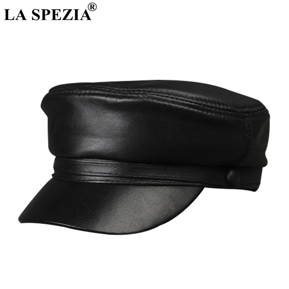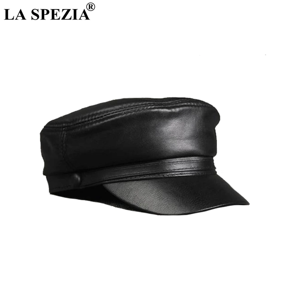 Название продукта: LA SPEZIA черная армейская шляпа Женская Натуральная кожа повседневные военные шапки Мужские Винтажные натуральная кожа люксовый бренд