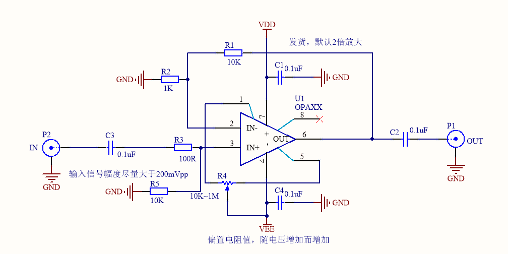 ①Чтобы уменьшить возможность самостоятельно возбуждаемых высокоскоростных ОП усилителей, пожалуйста, используйте высококачественные емкостные резисторы как можно больше, и используйте фиксированный резистор вместо Реостат со скользящим контактом для регулировки усиления.
