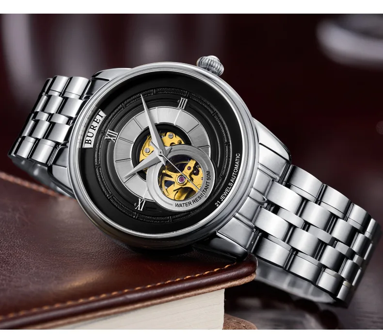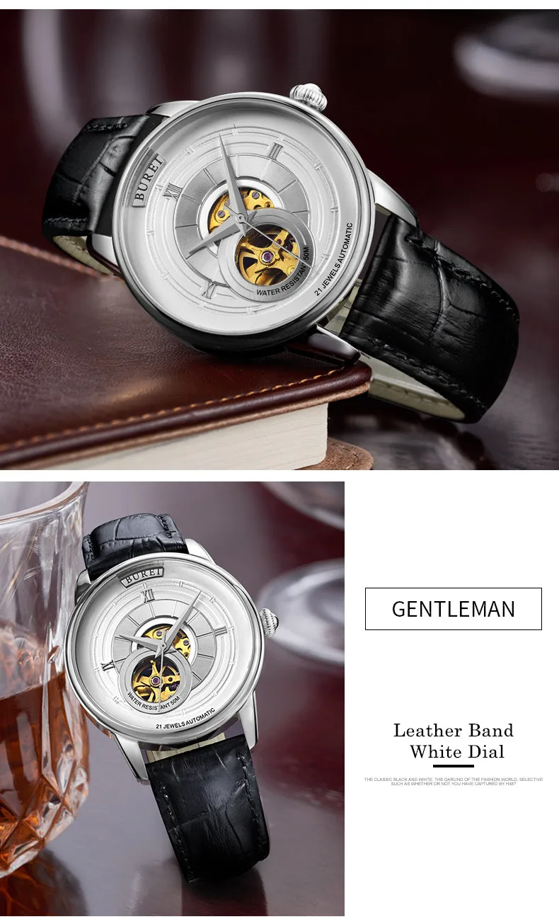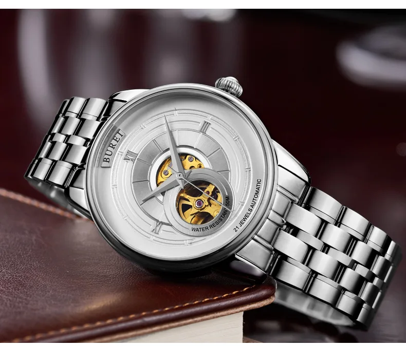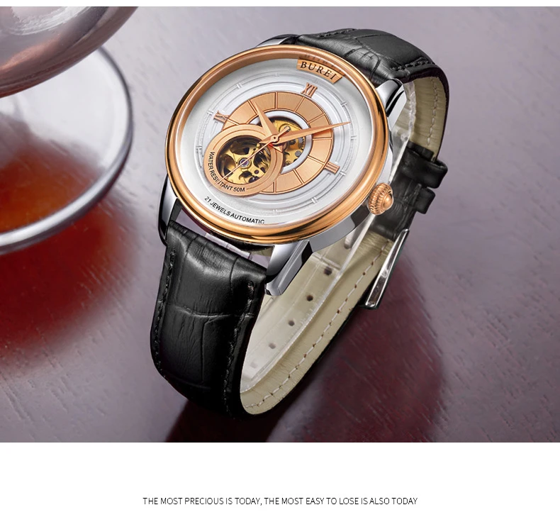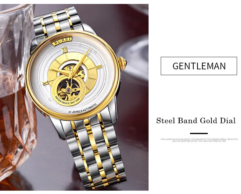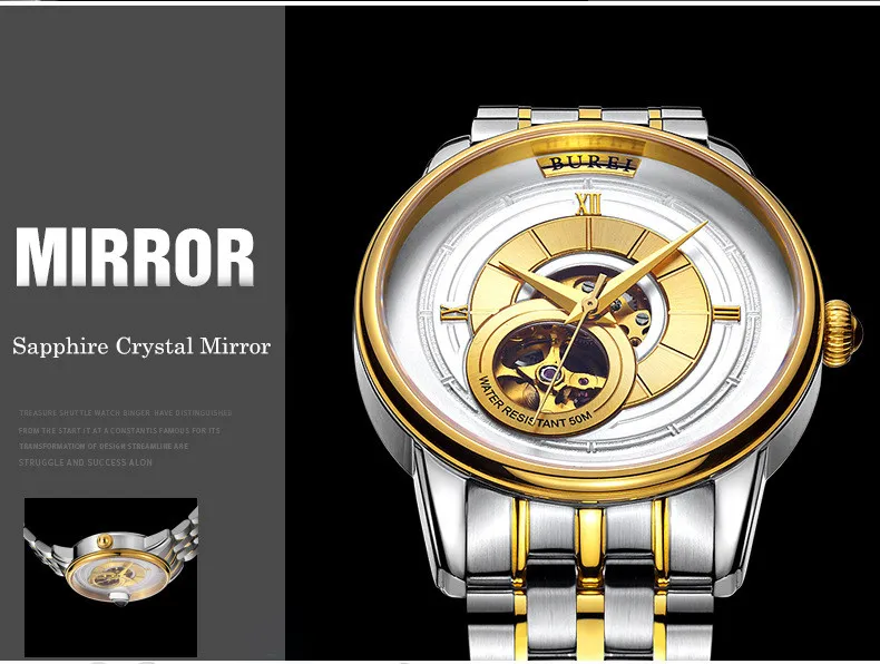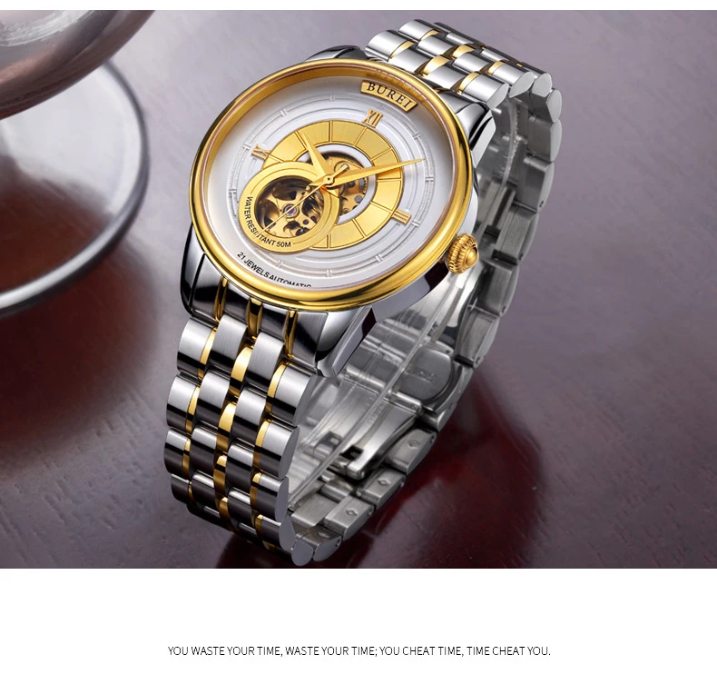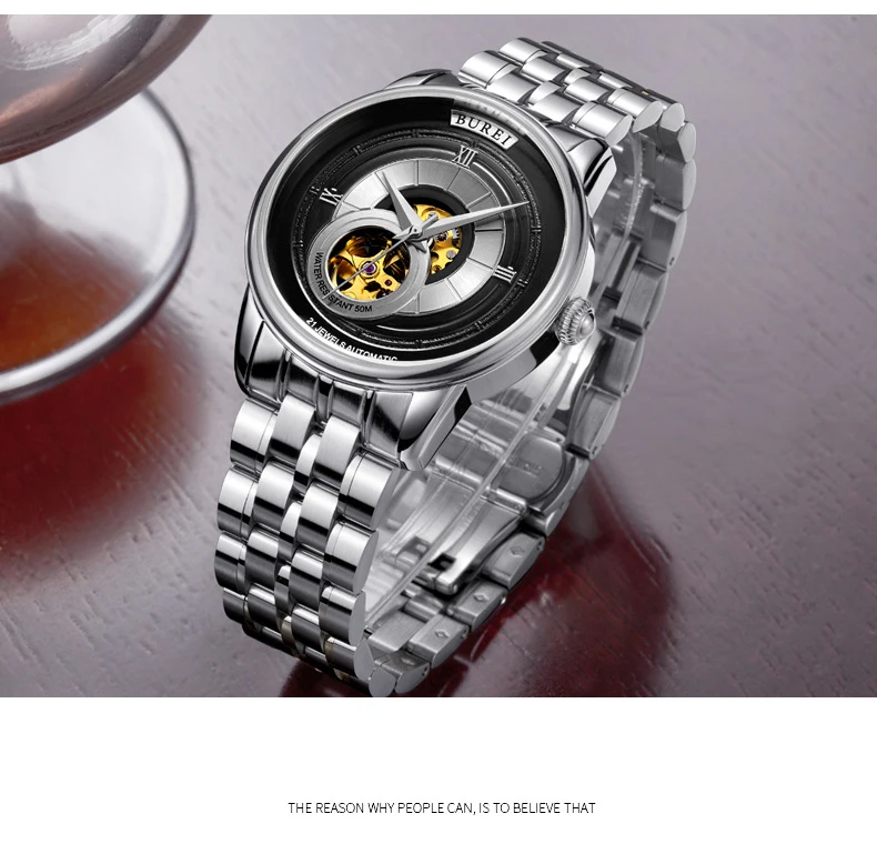 BUREI Brand Fashion Gold Automatic Watch Men Luxury Waterproof Fashion Hollow Business Mechanical Wristwatches Relogio Masculino