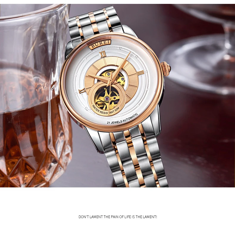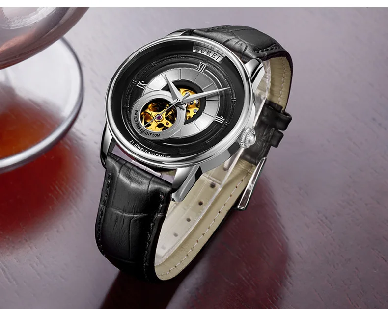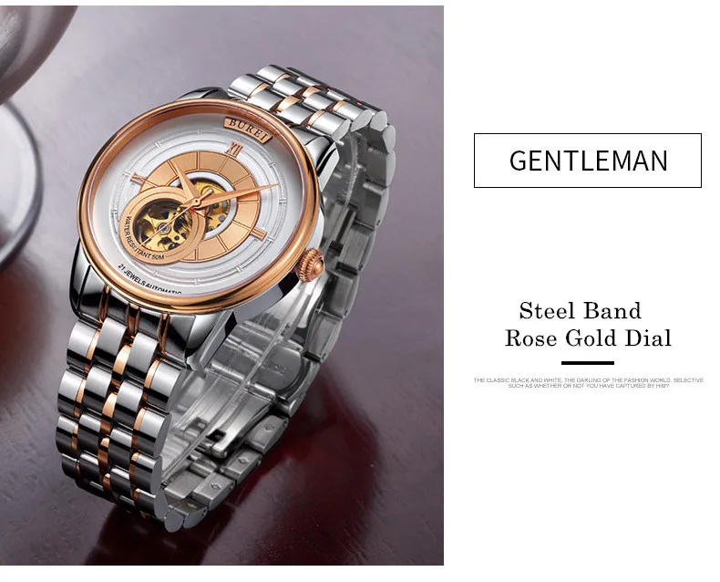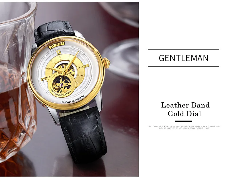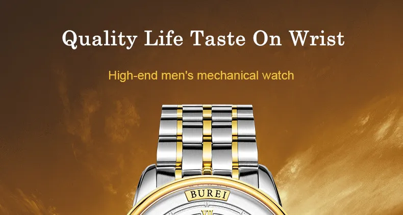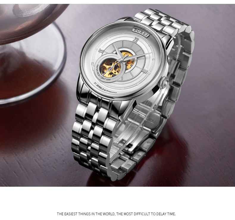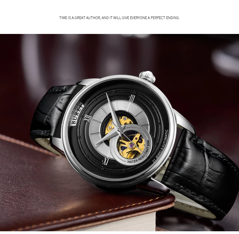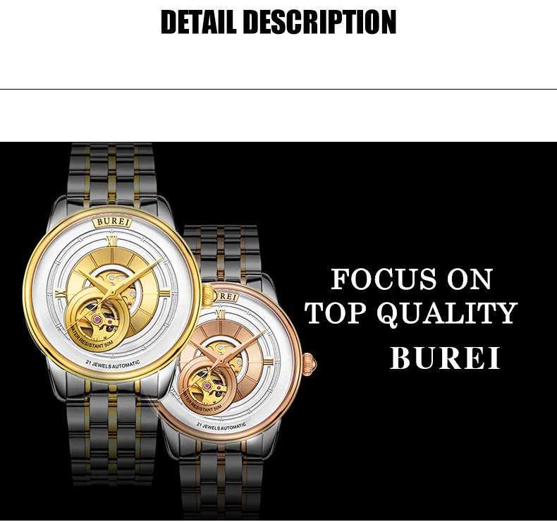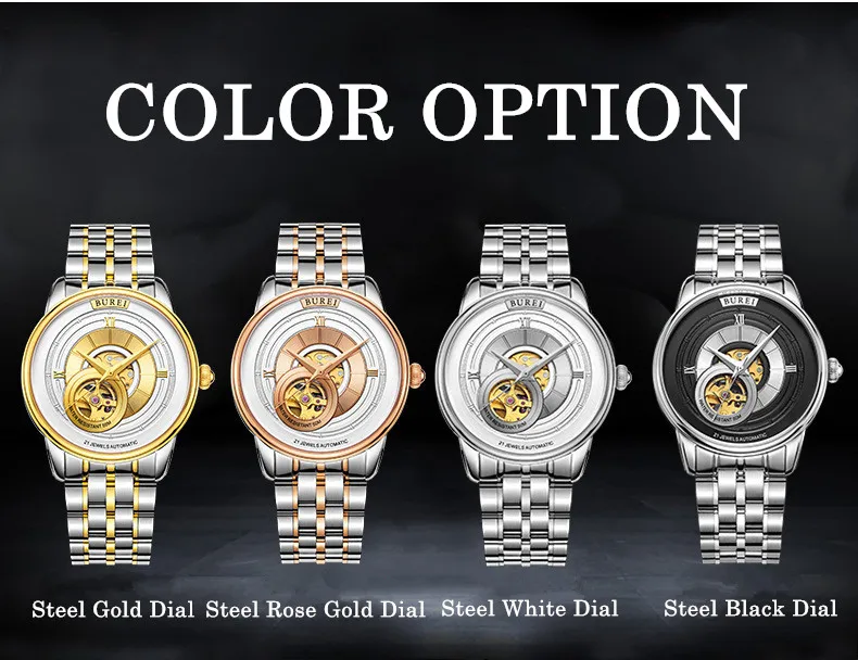 BUREI Brand Fashion Gold Automatic Watch Men Luxury Waterproof Fashion Hollow Business Mechanical Wristwatches Relogio Masculino