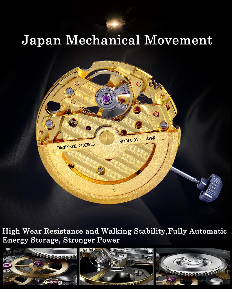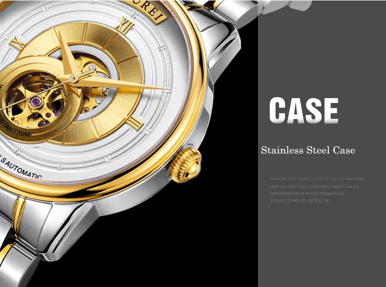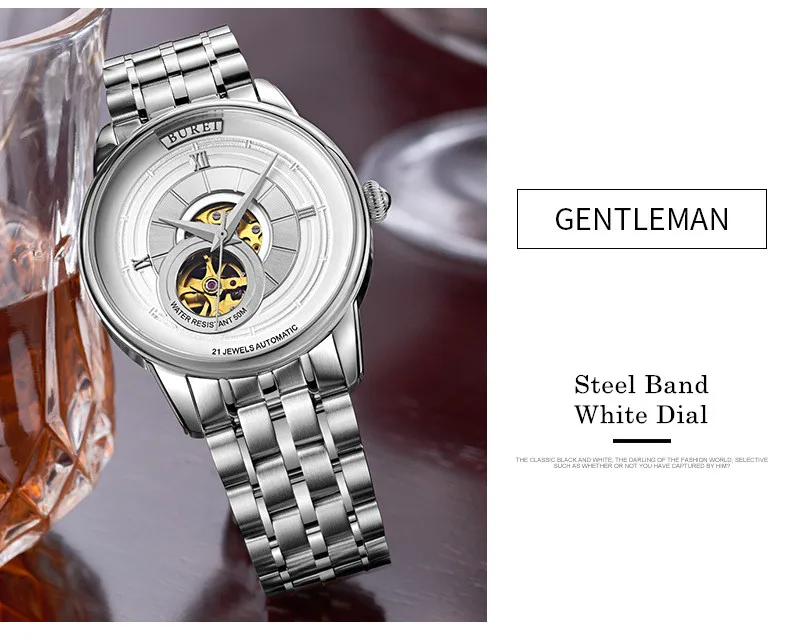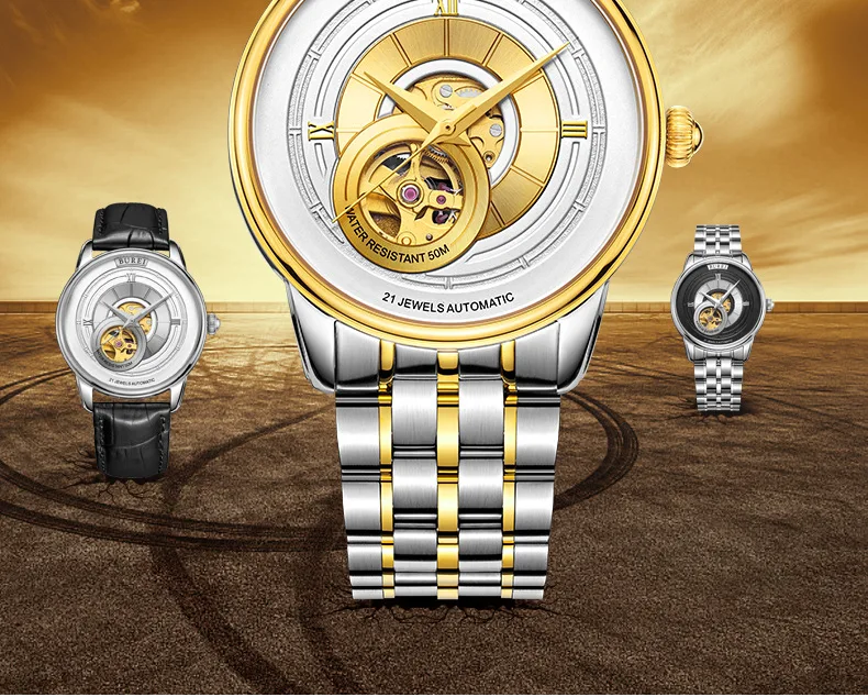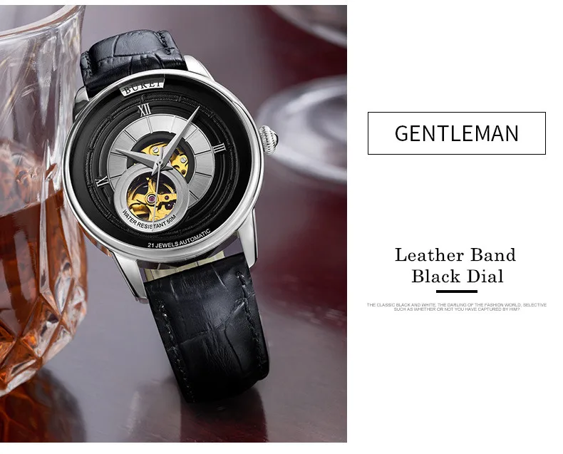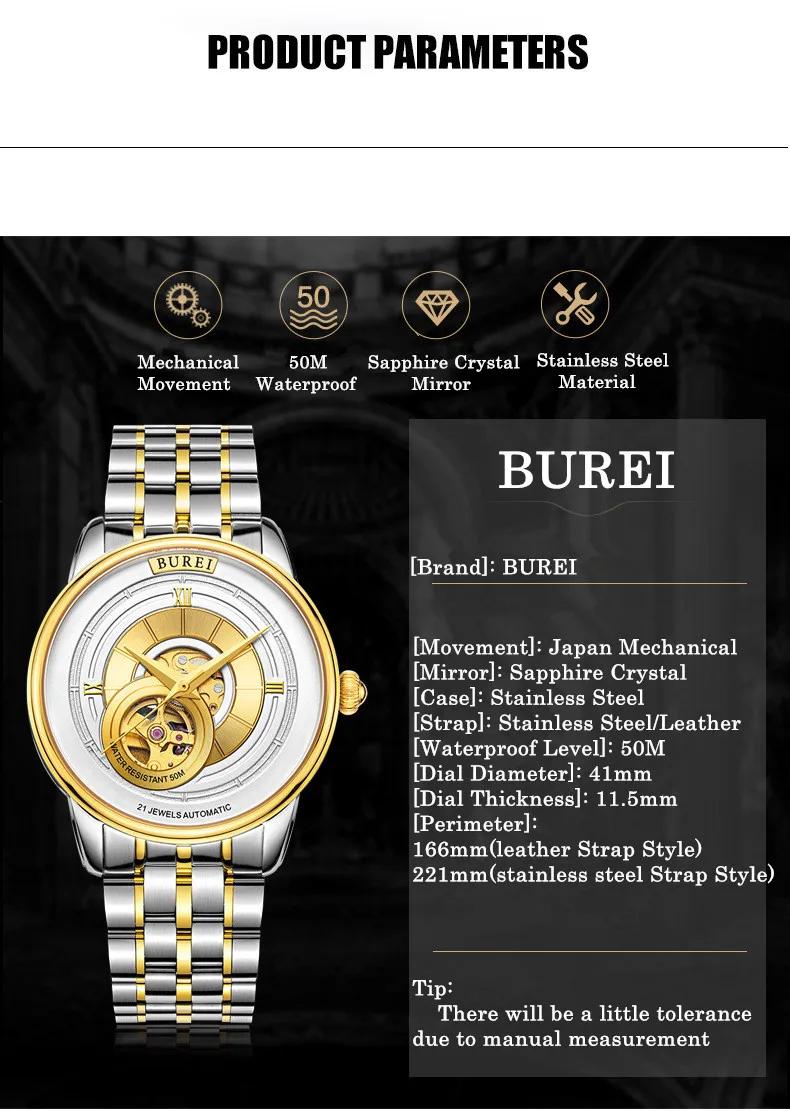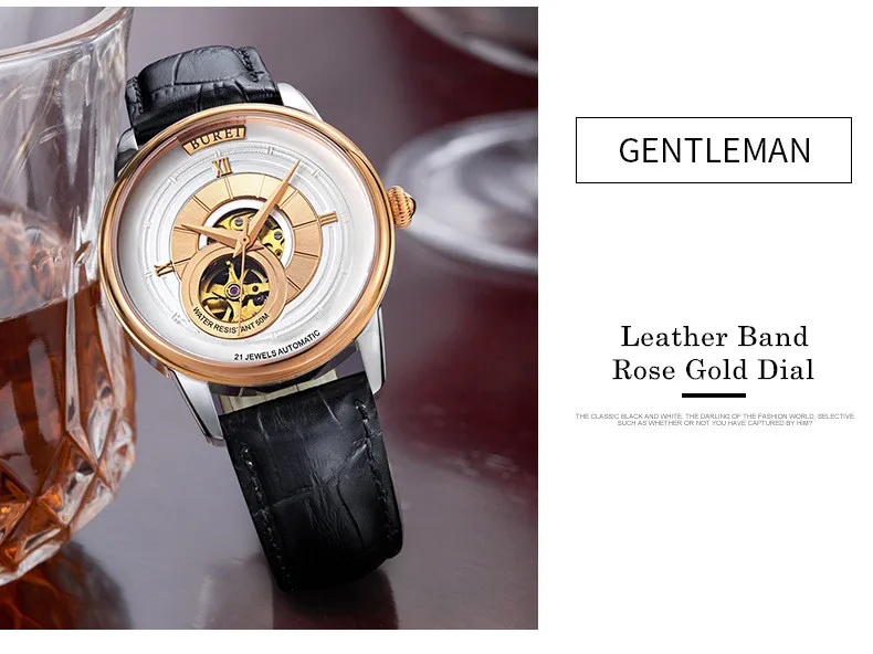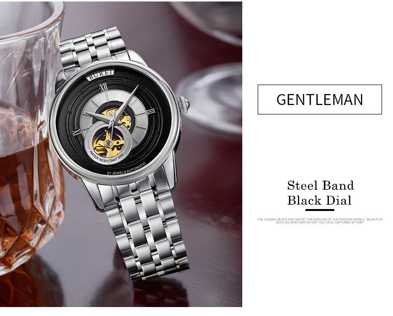 BUREI Brand Fashion Gold Automatic Watch Men Luxury Waterproof Fashion Hollow Business Mechanical Wristwatches Relogio Masculino