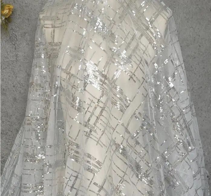 Home Decoration,Sewing Baby Skirt Silver,Black,gold pink,white Small Sequins Stripe Mesh Yarn Fabric S0603L