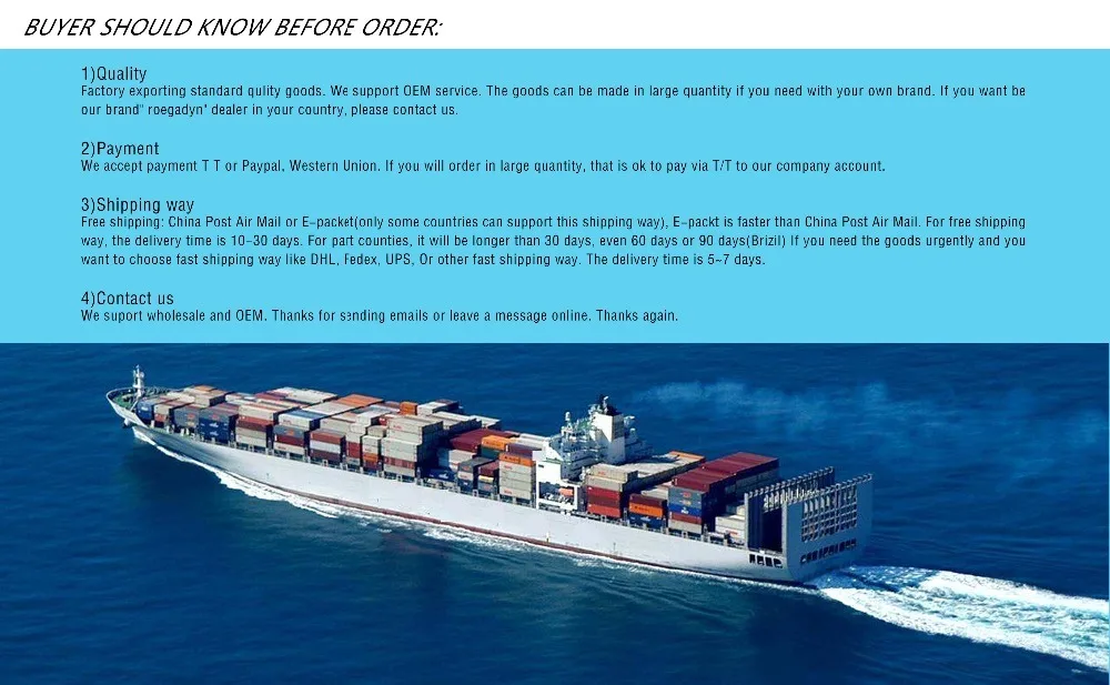 1. Если вы не получили нашу продукцию во время доставки, пожалуйста, свяжитесь с нами, помогите вам, пока вы не получите посылку, помогите вам решить все