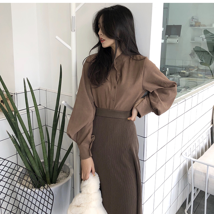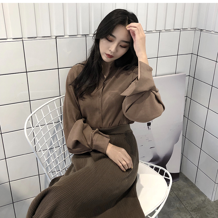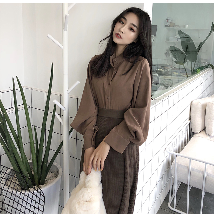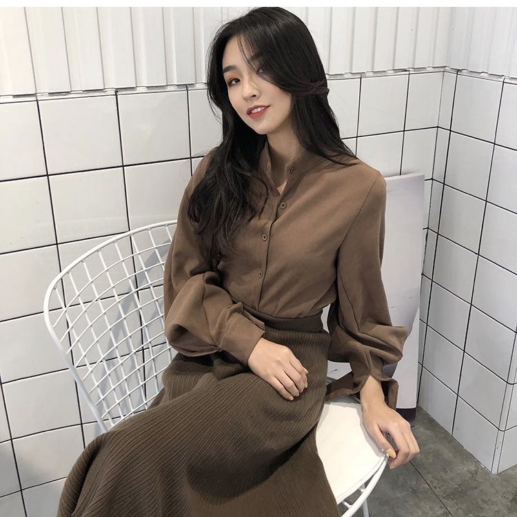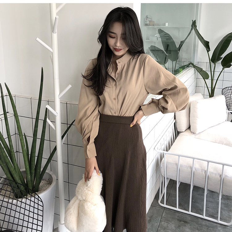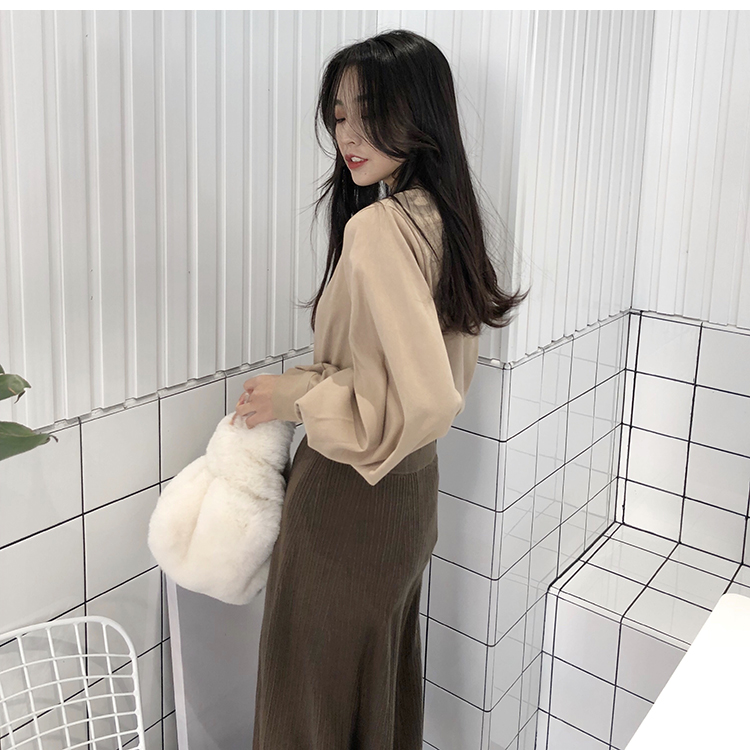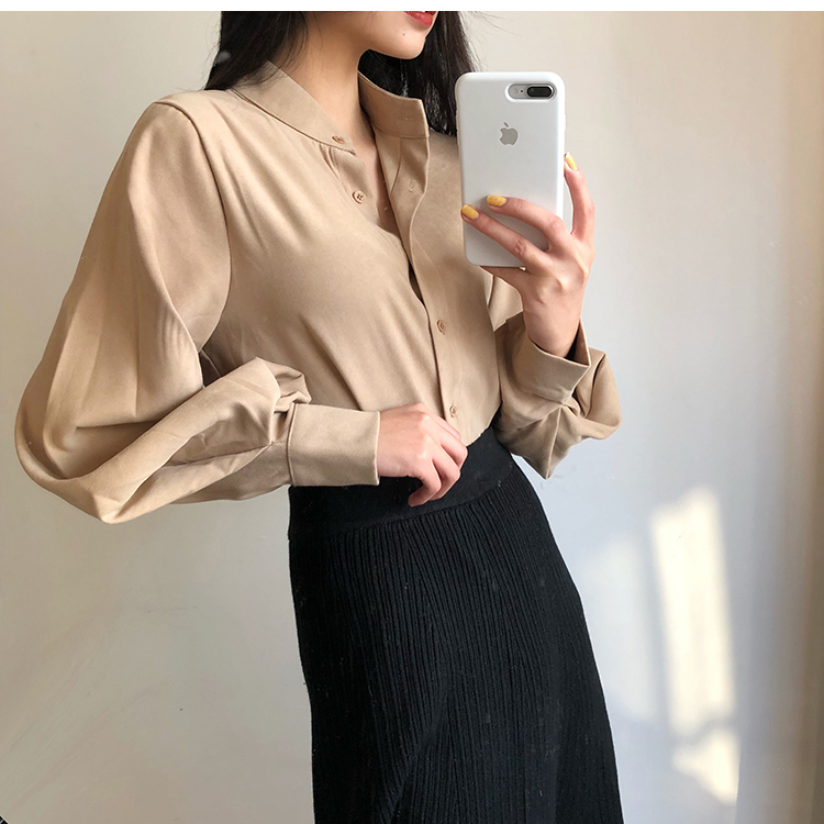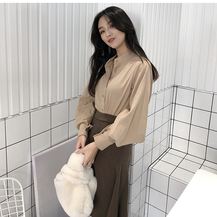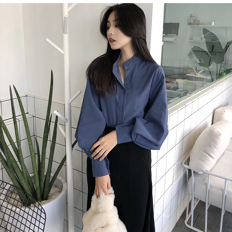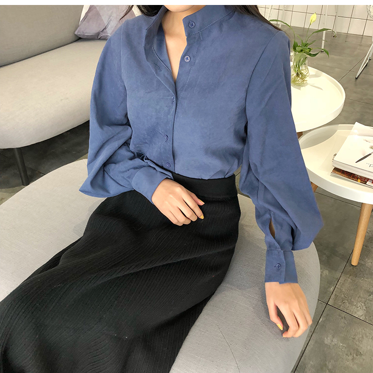 Название продукта:Фонари рукавом Для женщин s Топы и блузки с длинным рукавом модные женские туфли блузка 2018 Befree синий абрикос Повседневное женские топы