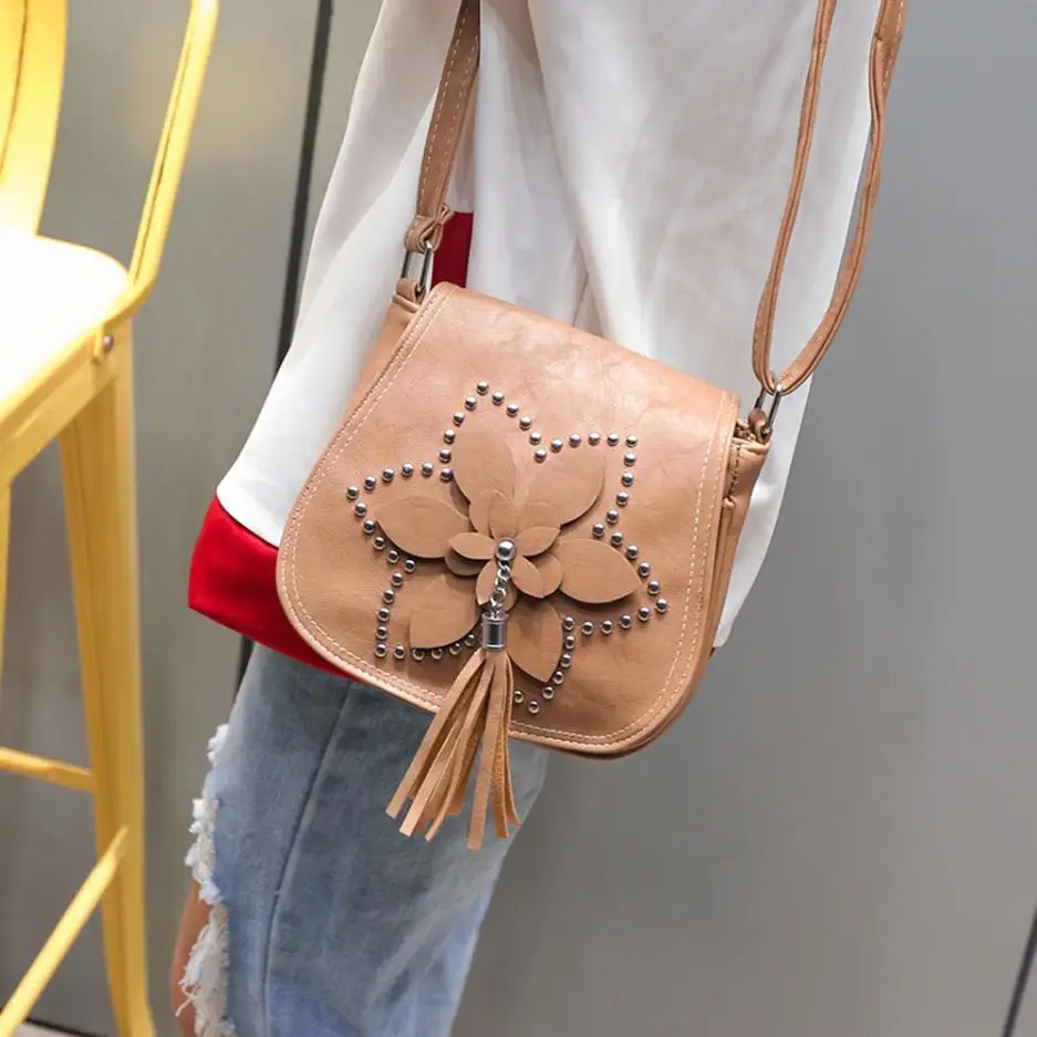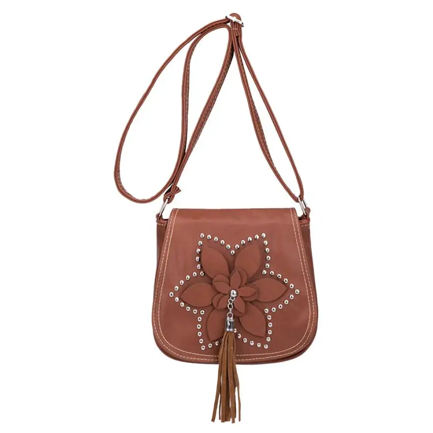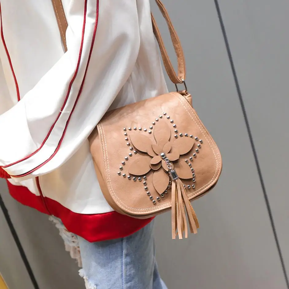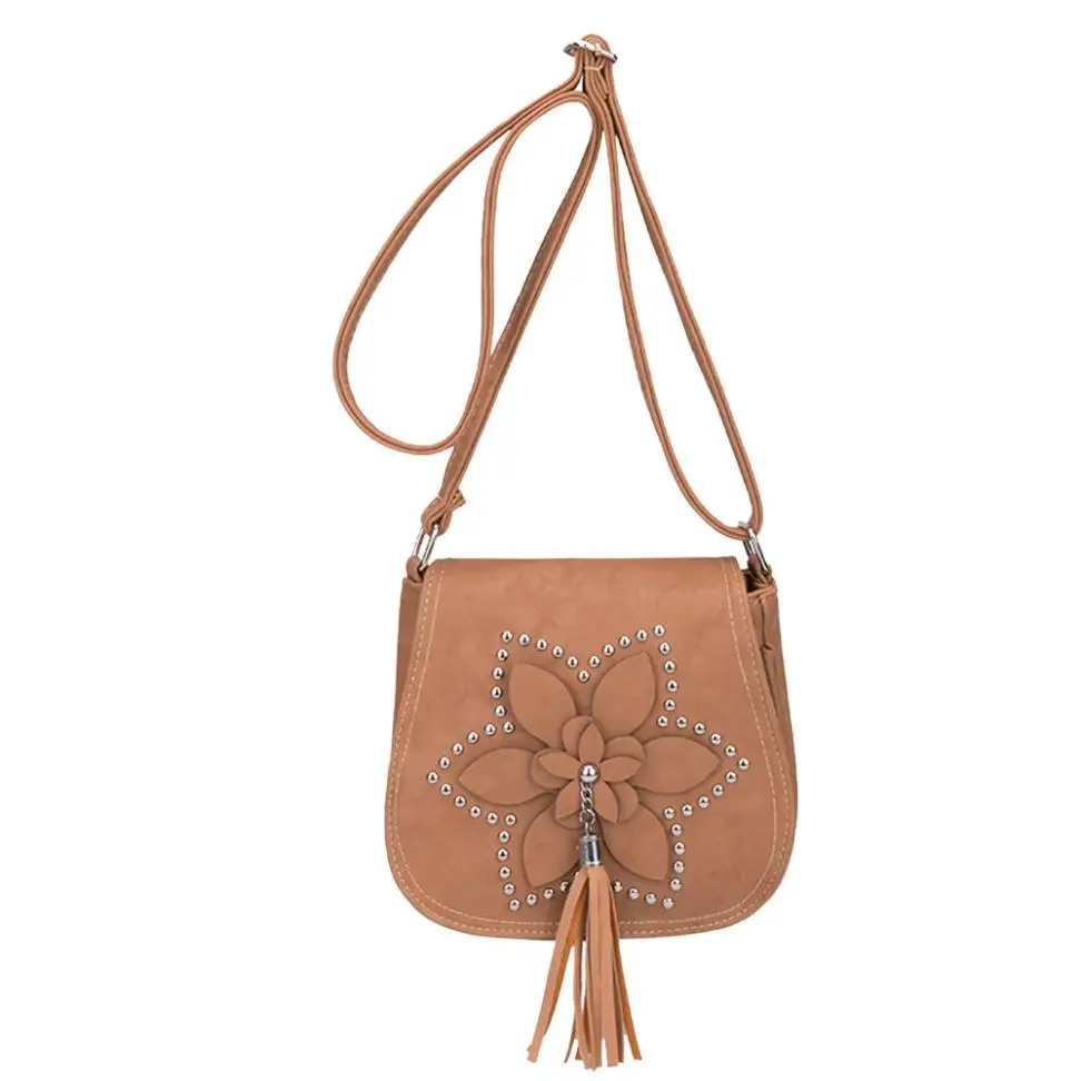 Винтажные женские цветы с кисточками кожаные сумки Messenger Сумка через плечо