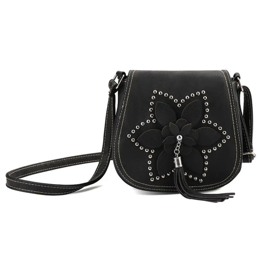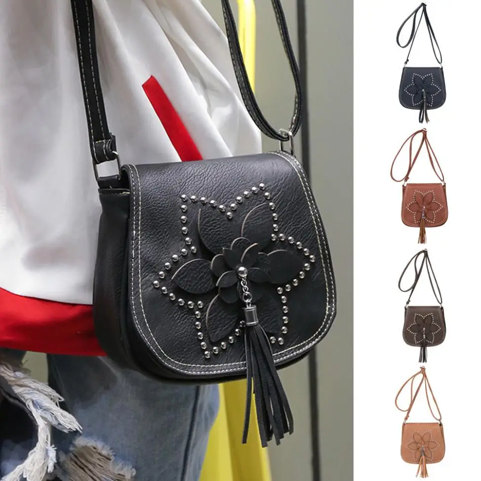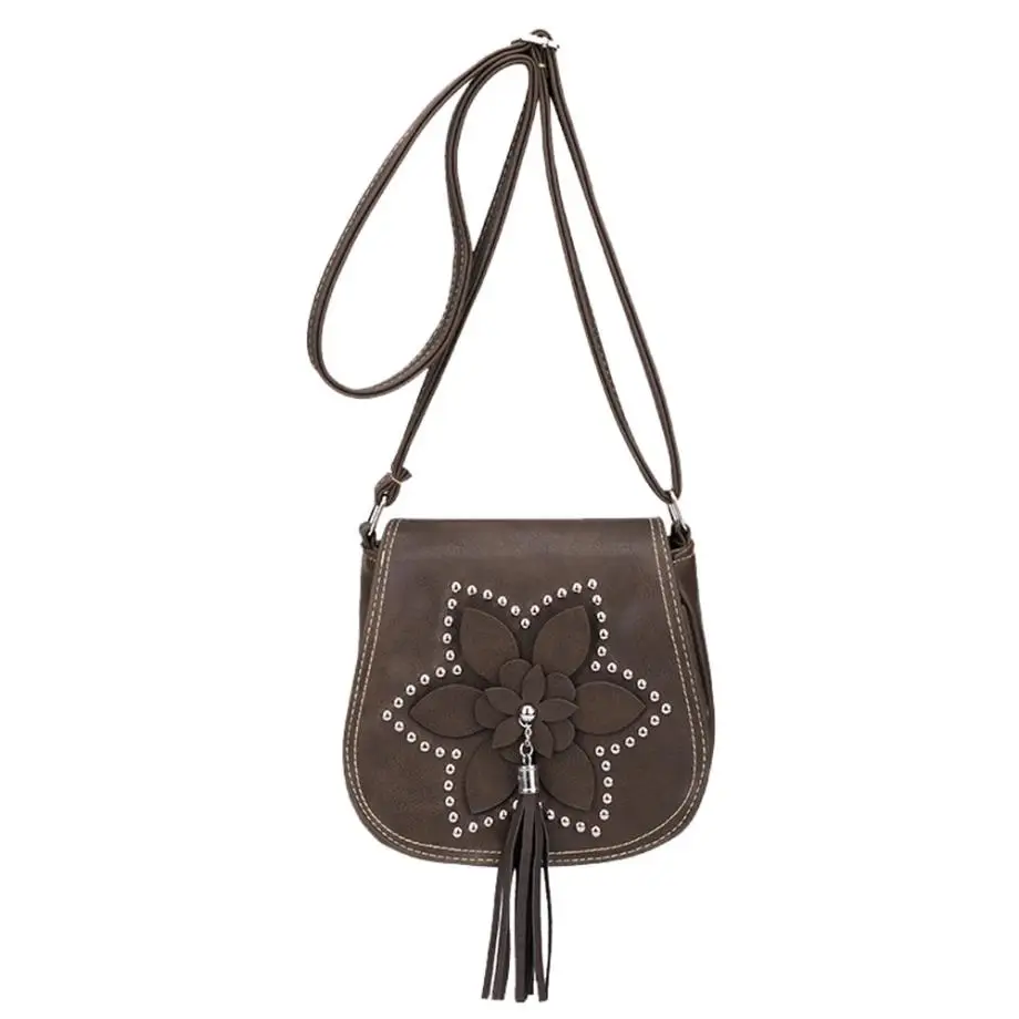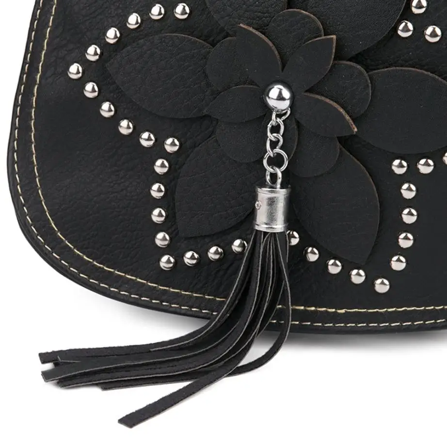 Винтажные женские цветы с кисточками кожаные сумки Messenger Сумка через плечо