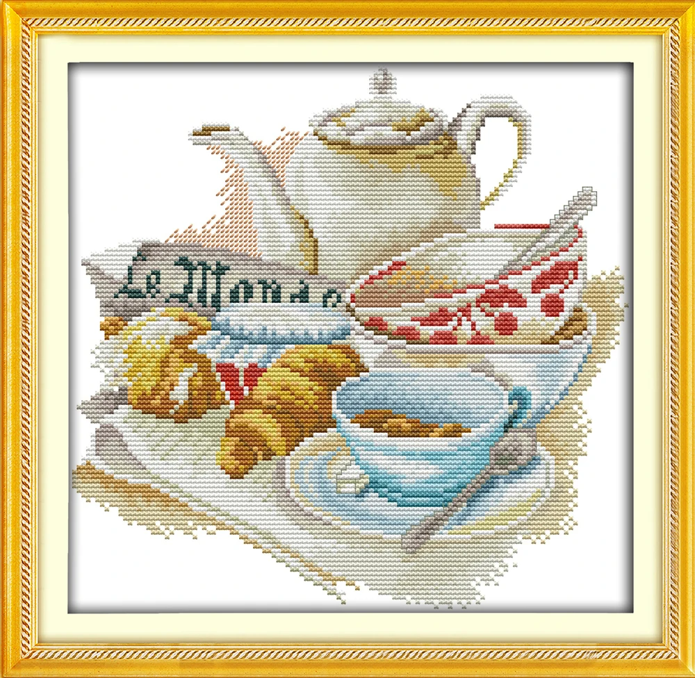Элегантный чайный набор, наборы для вышивки крестиком, напечатанный холст, DMC, напечатанный счетом, Набор для вышивки крестиком, набор для рукоделия