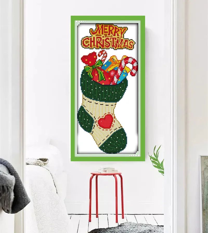 Рождественские чулки DIY украшения наборы крестиков печать шаблон холст DMC Счетный набор крестиков вышивка набор рукоделие