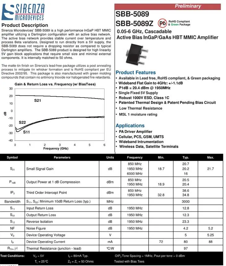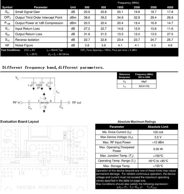 Модуль усилителя мощности TZT SBB5089 RF 50N-6GHz 18dB широкополосное усиление усиления