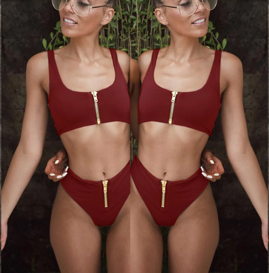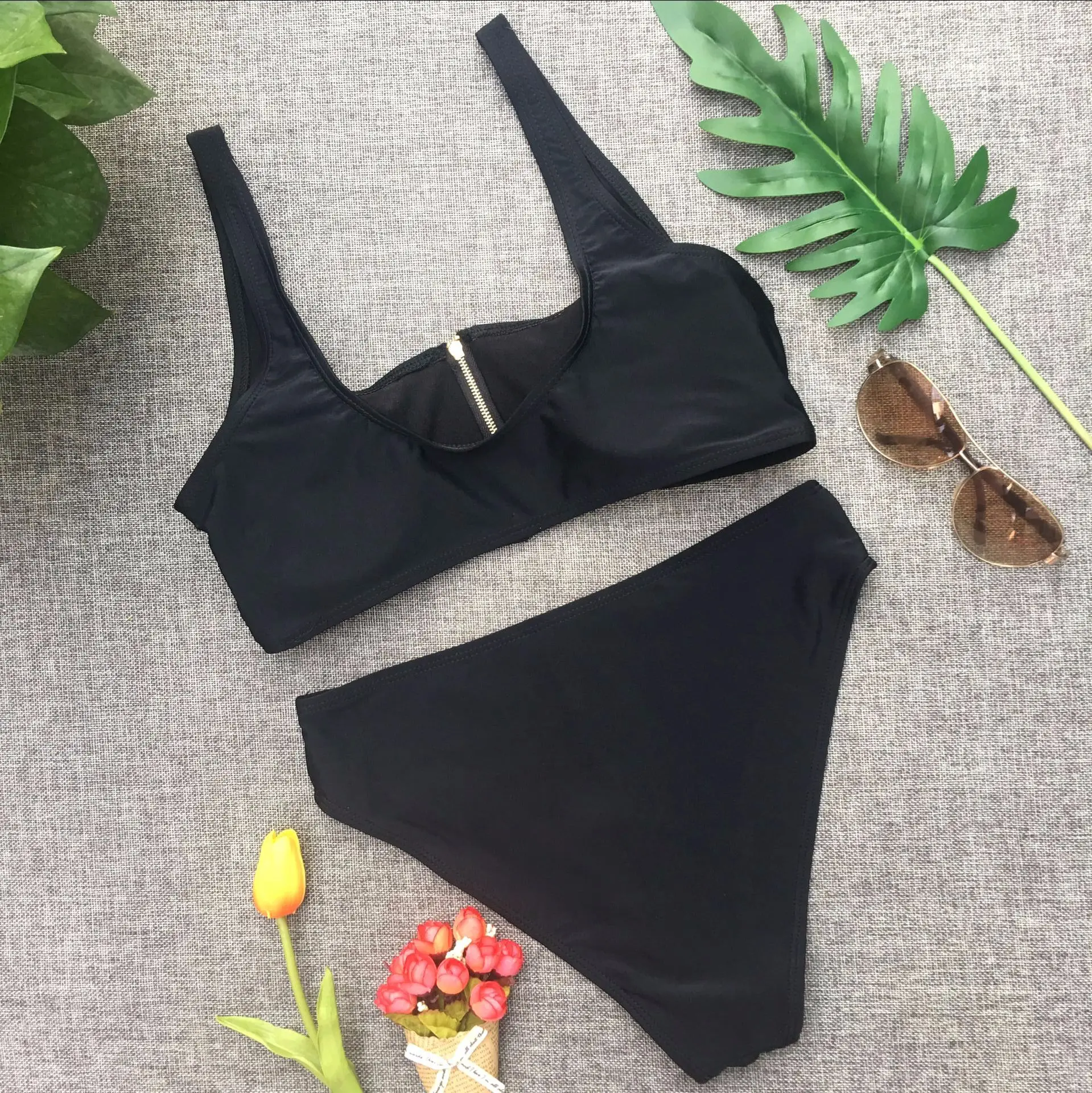 2018 новый купальник женский на молнии с высокой талией комплект бикини купальник пуш-ап из двух предметов купальный костюм для женщин черный бикини