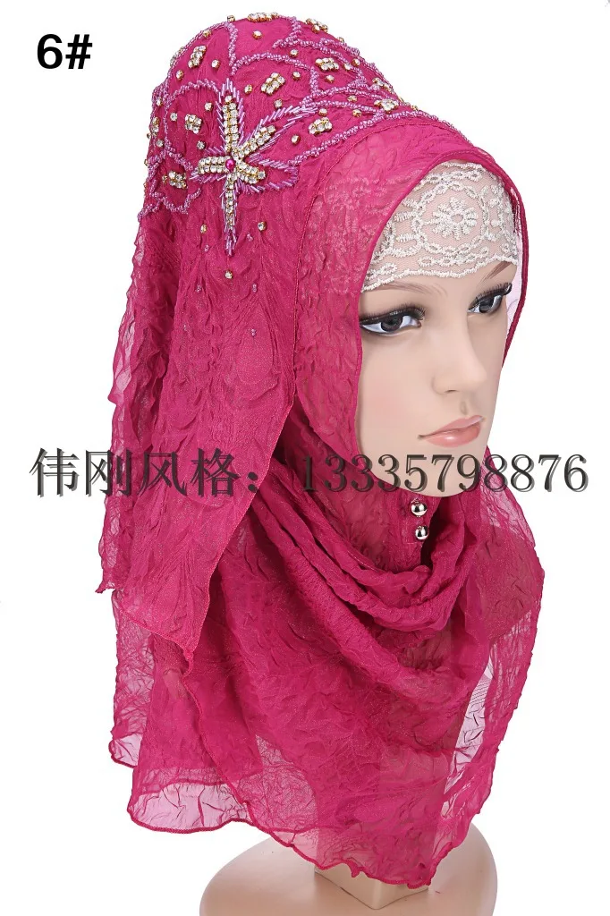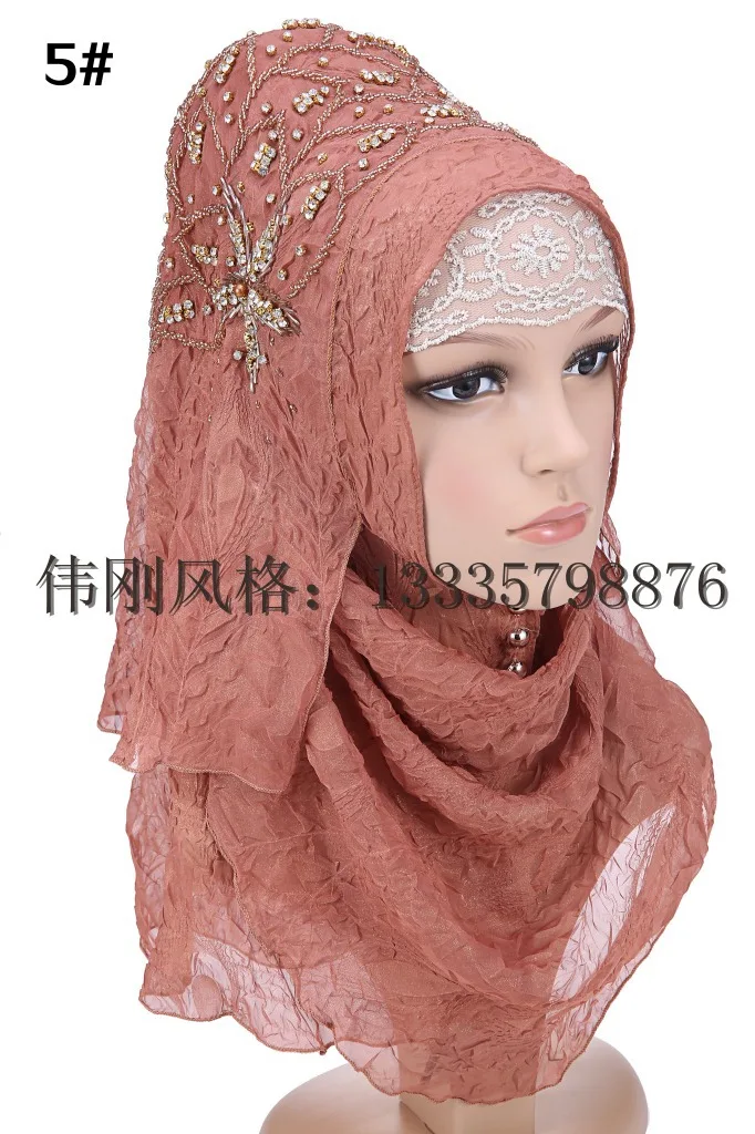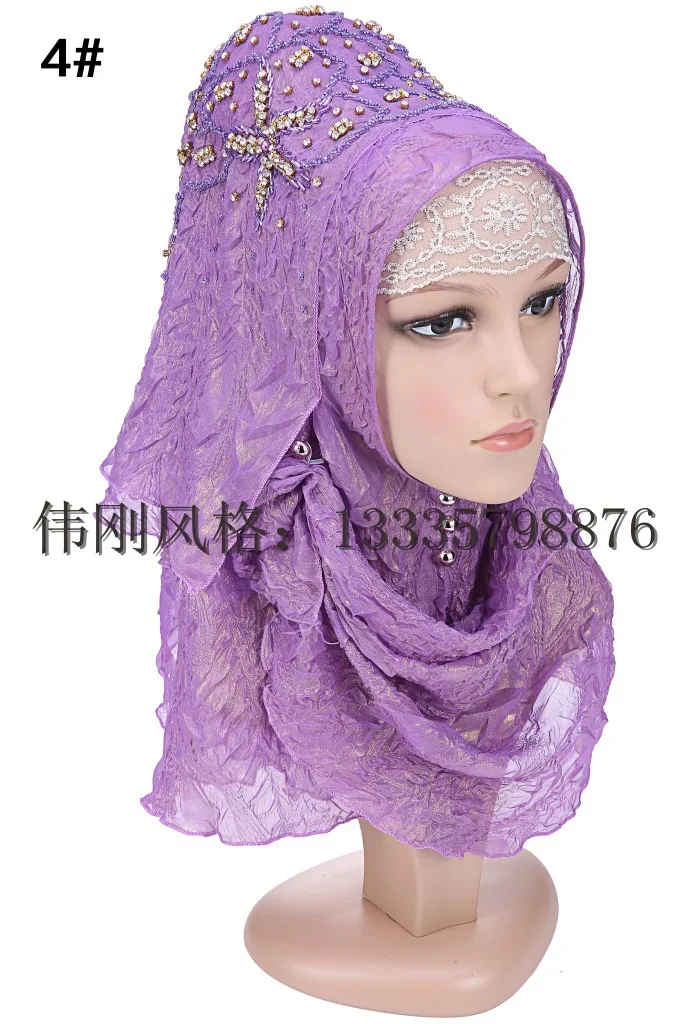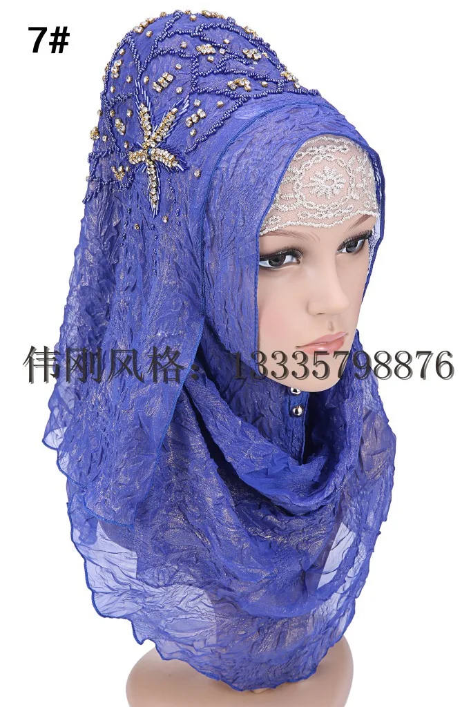 Модный дизайн, высокое качество, шифоновая вышивка, турецкие бриллианты, хиджаб istamic style платок мусульманский, хиджаб для женщин, 7 видов цветов