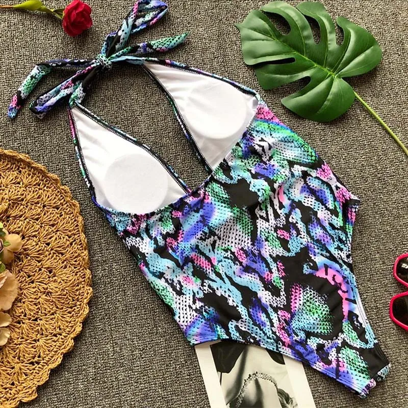 2018 Новый Цельный купальник женский сексуальный леопардовый купальник женский с принтом Глубокий v-образный Вырез Холтер купальный костюм Монокини Пляжная одежда