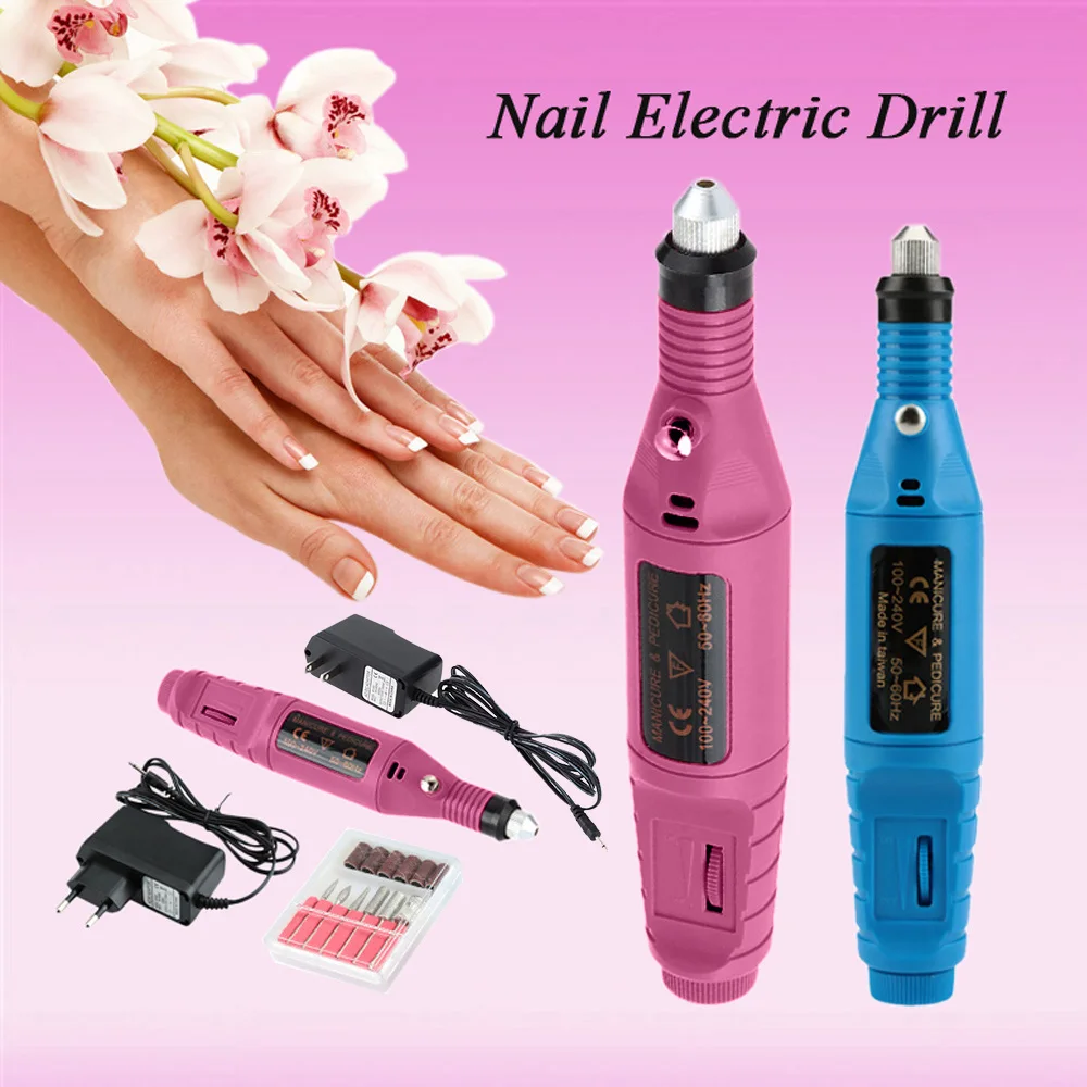 1 набор, Мини Портативная электрическая дрель для ногтей в форме ручки, инструмент для маникюра, маникюра, пилки, 6 бит, американские правила, розовый цвет