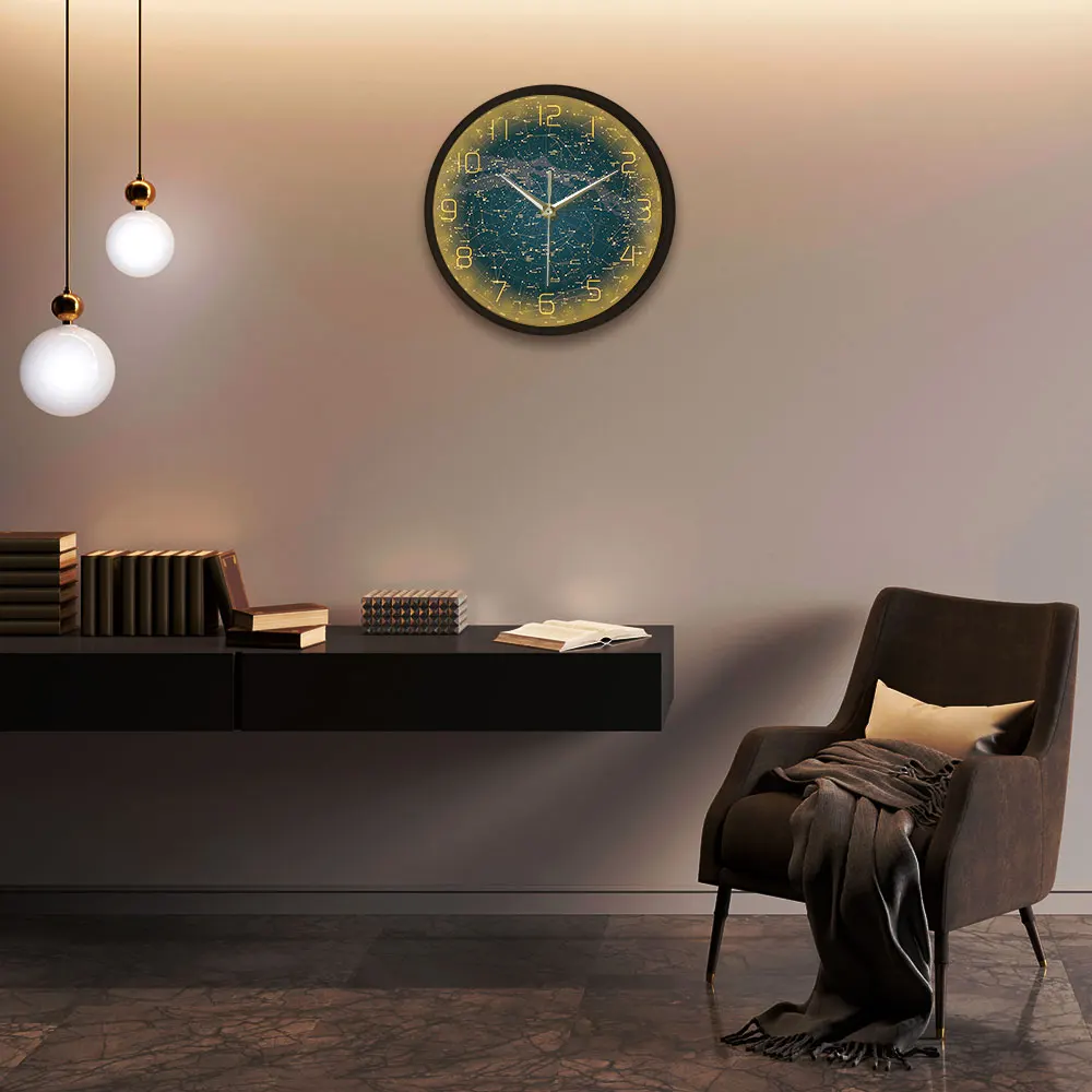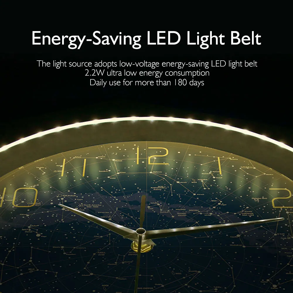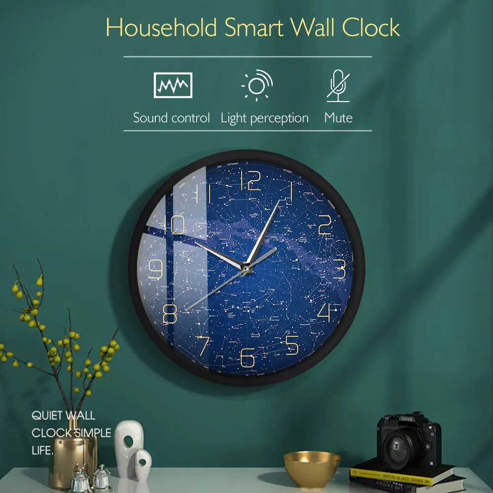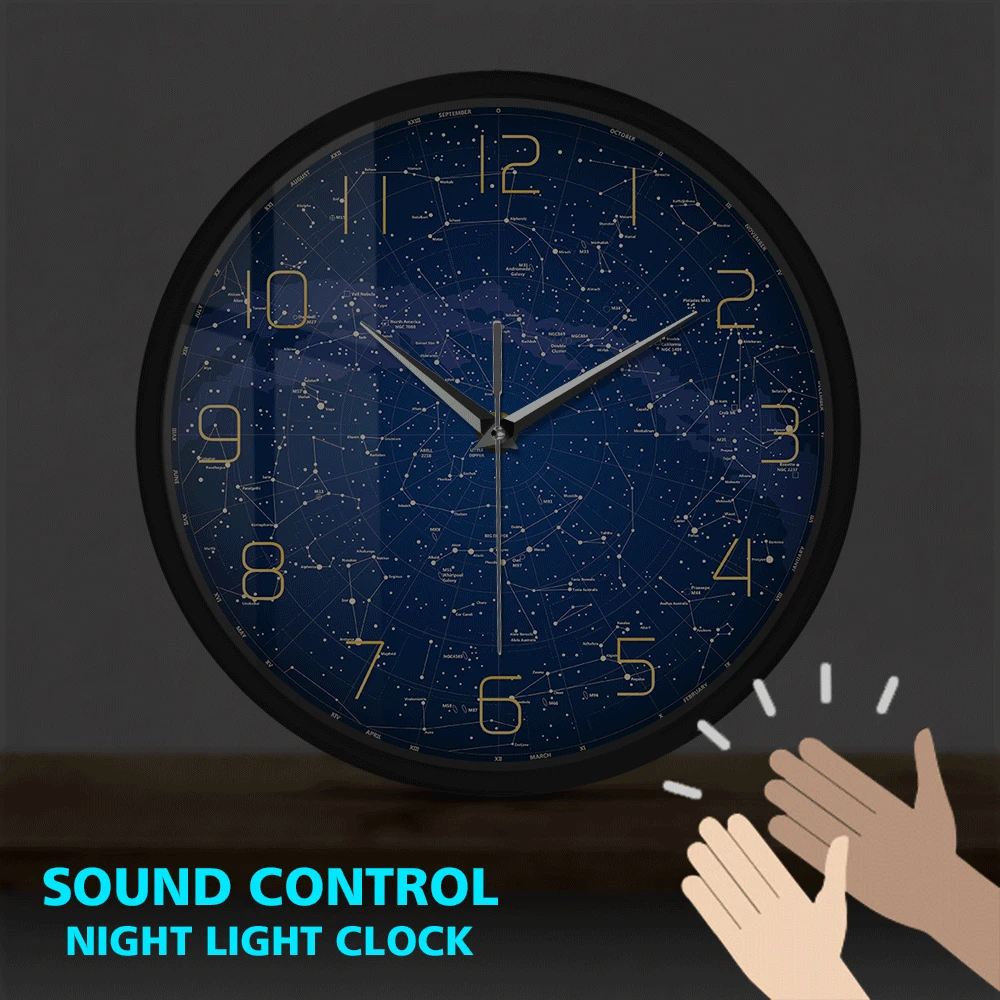 Нет ничего более важного в спальне, офисе или жилом помещении, чем 12 "настенные часы, как это! Блестящий светильник, создающий звук в темноте, вам больше никогда не придется беспокоиться об этом. Через 45 секунд, он выключится, и вы снова в кровать!