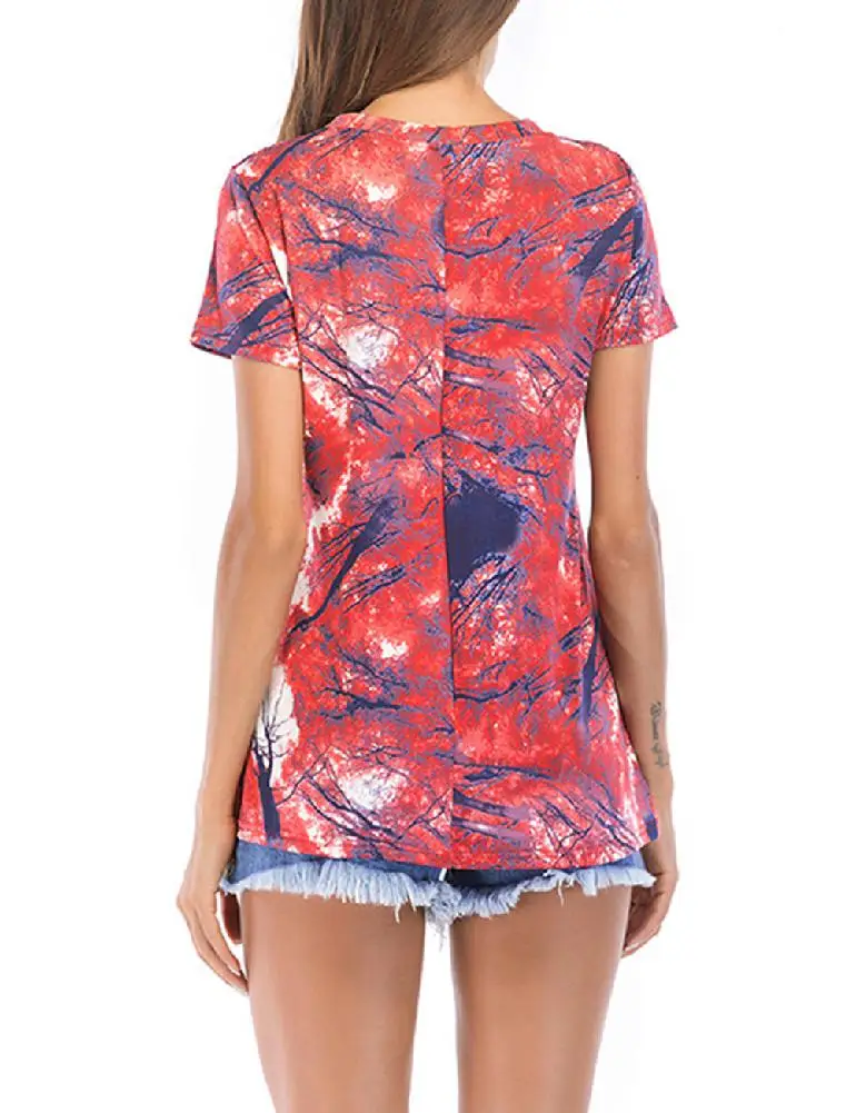 Mrwonder Женская Стильная Повседневная Эластичная рубашка с круглым вырезом с коротким рукавом с принтом топы Футболка