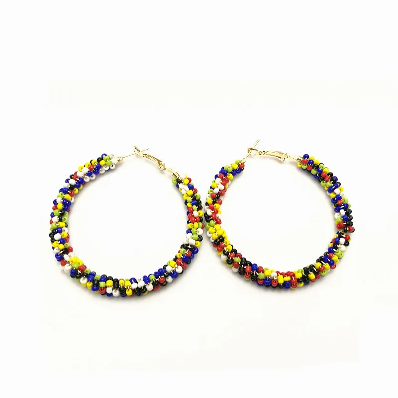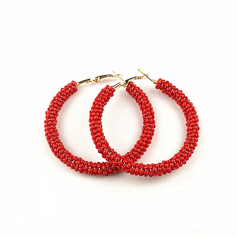 FUNIQUE Bohemian Hoop Earrings Women Fashion Big Circle Bead Earing Women Statement Earrings Boho Party Wedding Jewelry Brinco
