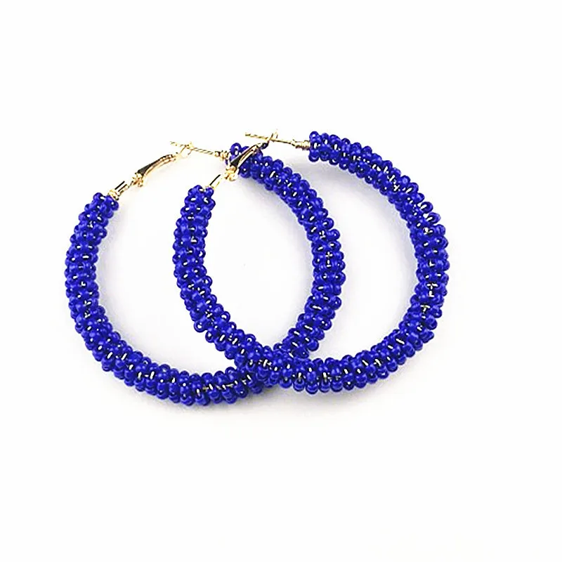 Material:alloy/beads Type:women big circle hoop earrings Occassion:Party / Daily / Office/Gift Size:5cm Color:pink;black;grey;blue;colorful;gold colorStyle:fashion,bohemain,hot selling