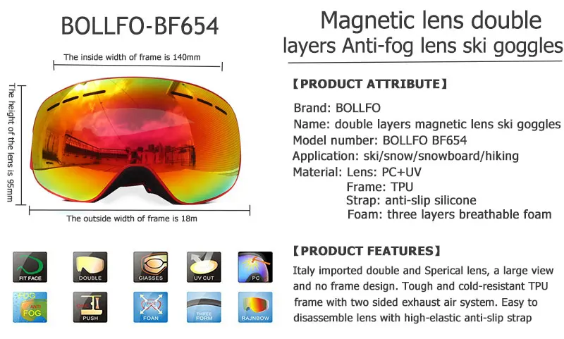 Lenses Optical Attribute: UV400 Protection Anti-fog Explosion-proof double layer lense, Mirror Coating.