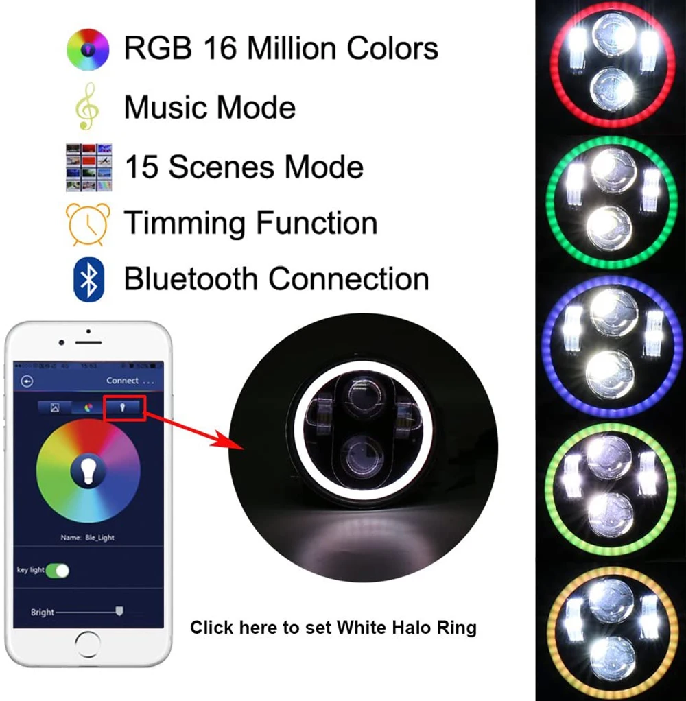 RGB Белый halo Кольцо DRL ангельские глазки 5,75 дюймов светодиодные фары для Sportster Touring Super Glide Dyna